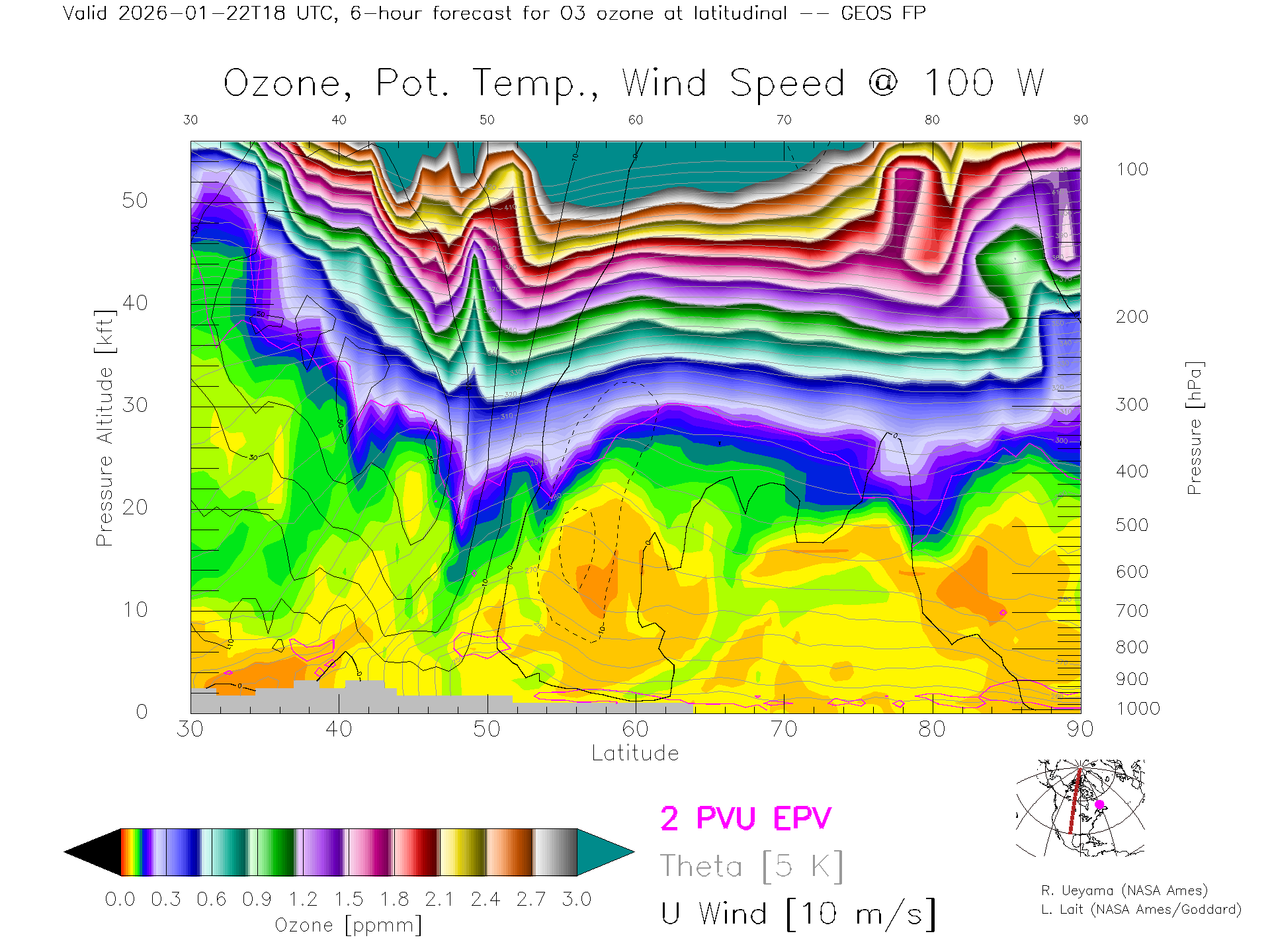 GEOS Forecast Ozone X-Section (100 W)