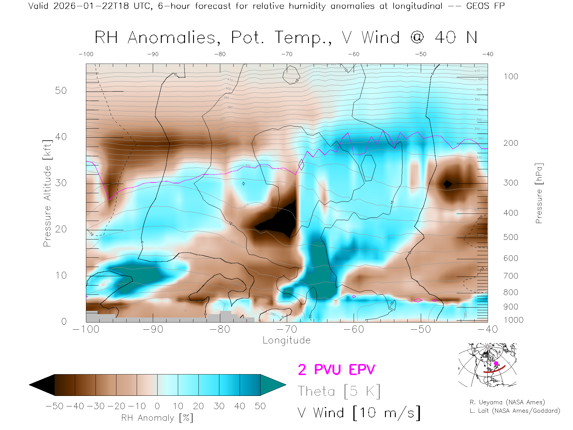 GEOS Forecast Rel. Hum. X-Section (40 N)