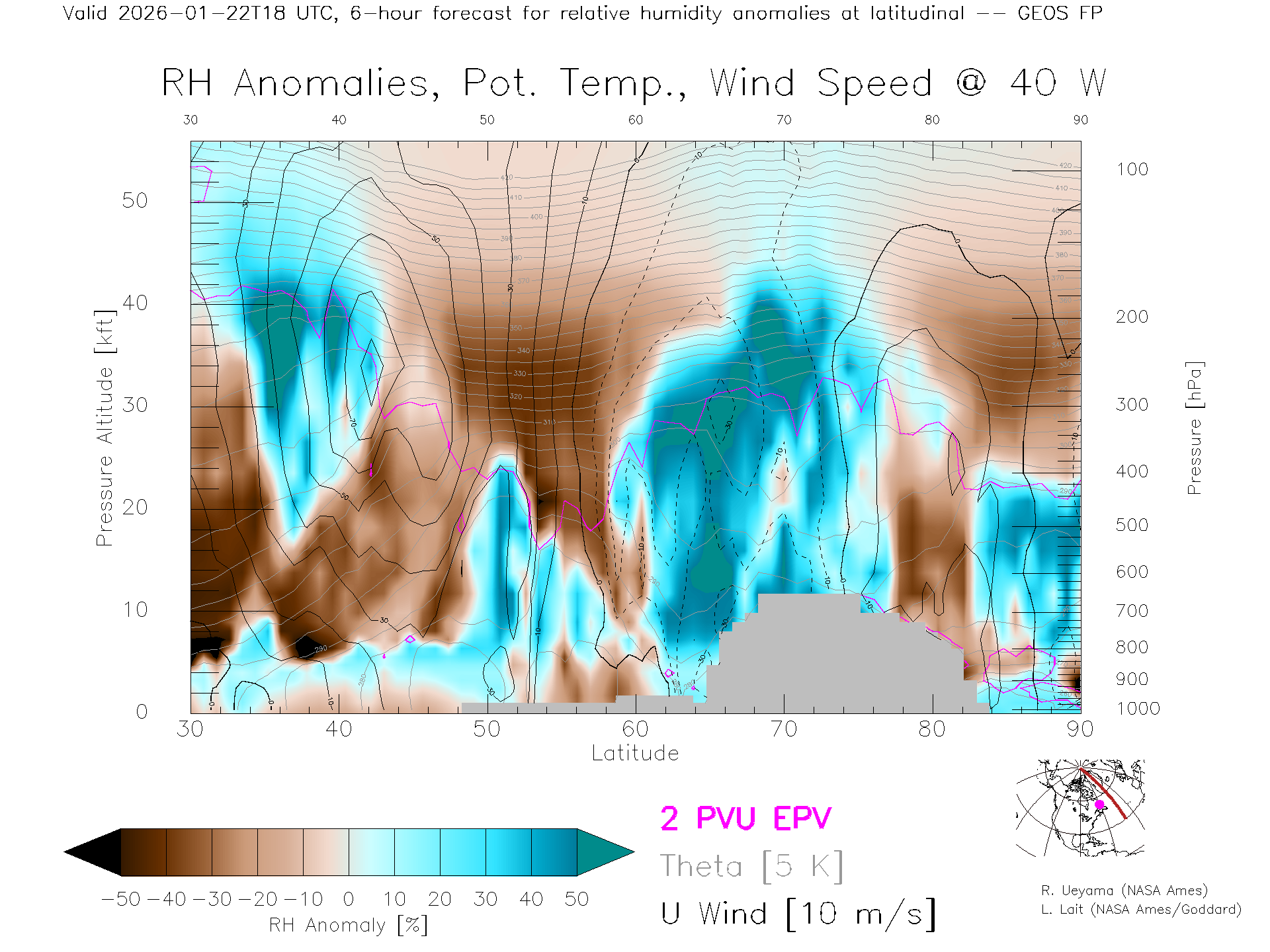 GEOS Forecast Rel. Hum. X-Section (40 W)