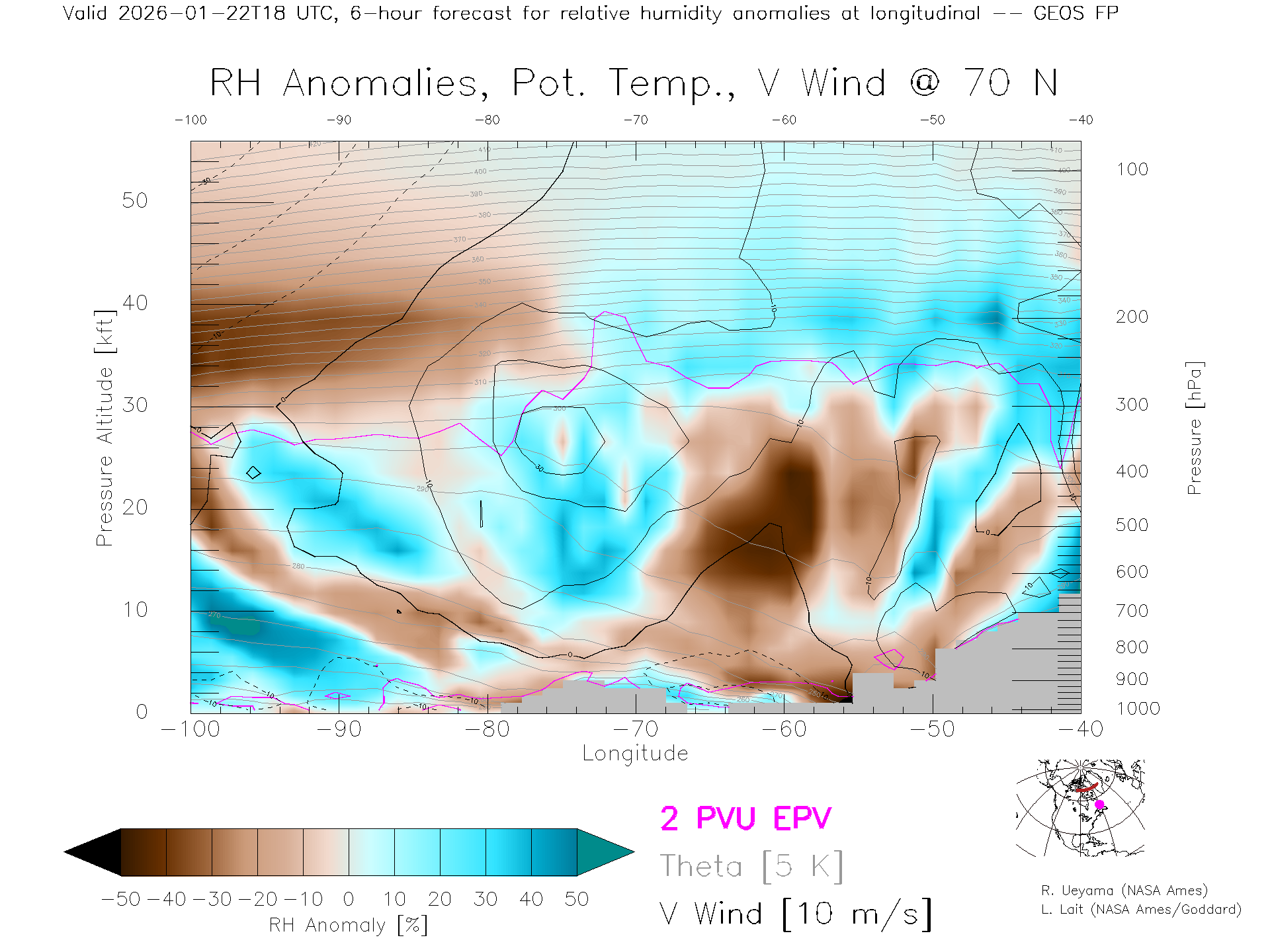 GEOS Forecast Rel. Hum. X-Section (70 N)