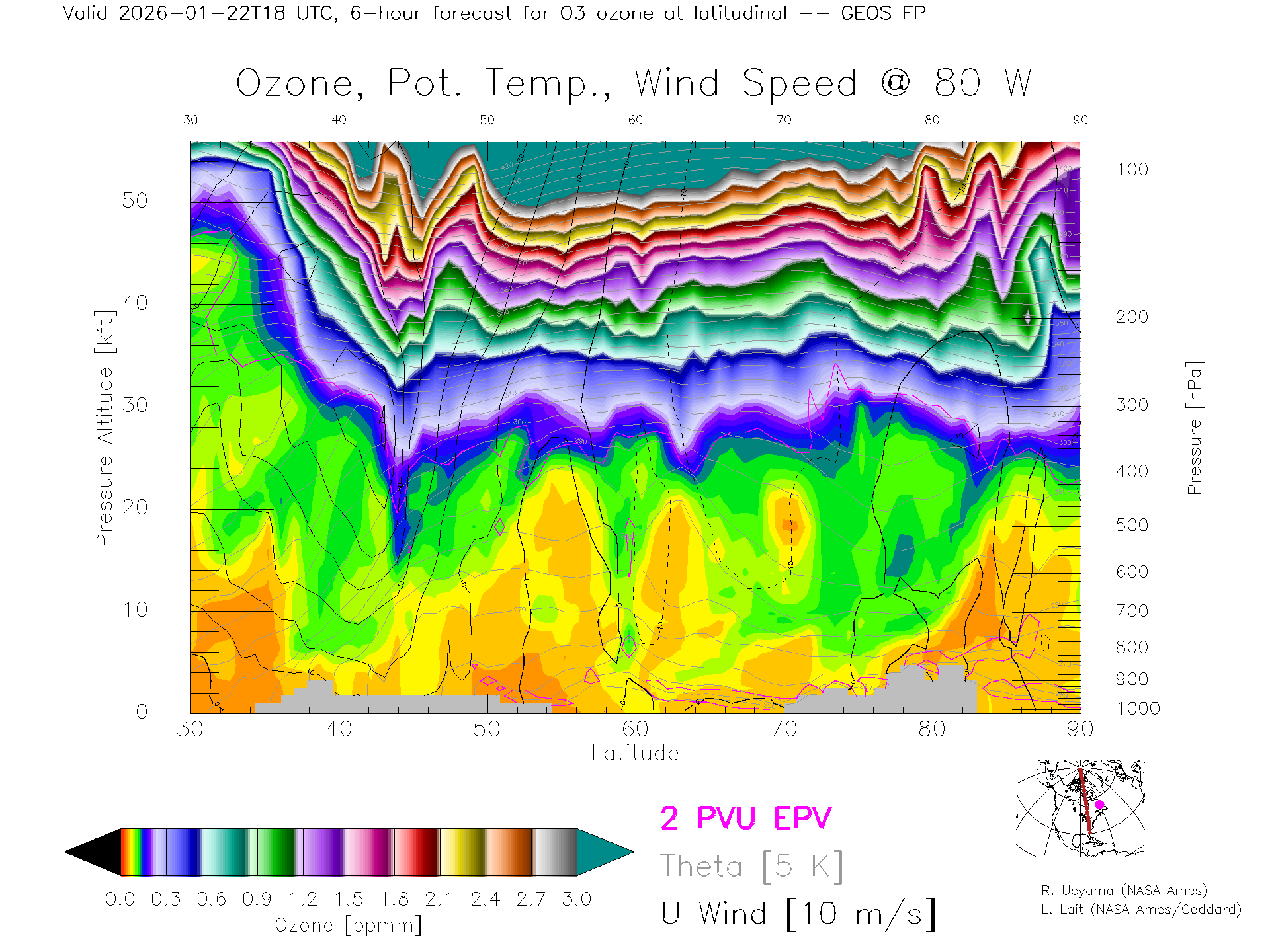 GEOS Forecast Ozone X-Section (80 W)