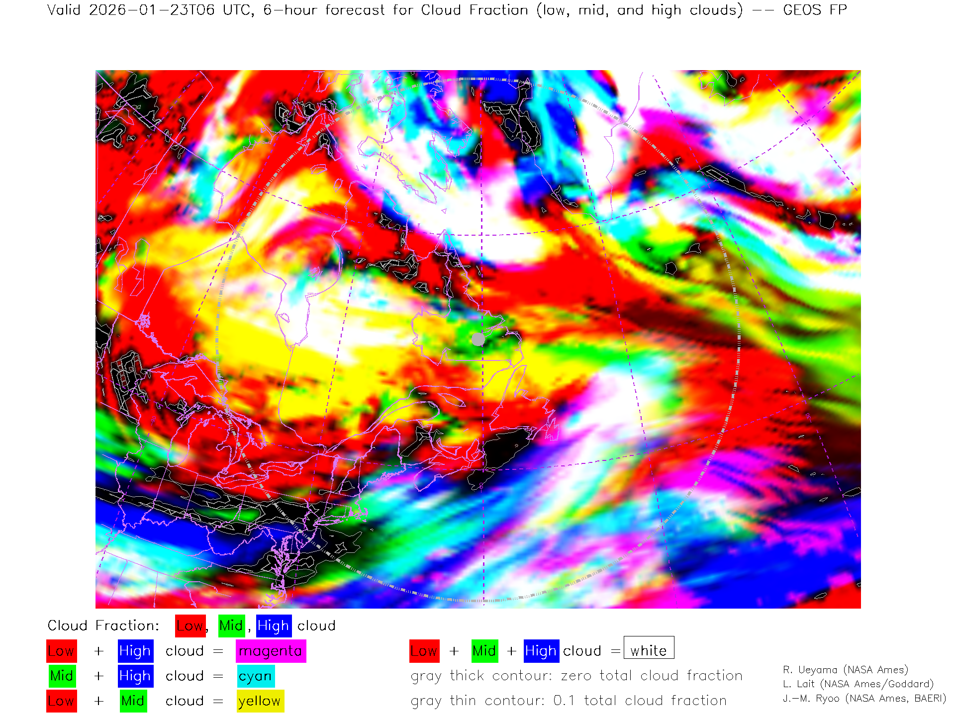 GEOS Forecast Low-, Mid- and High-level Cloud Fraction