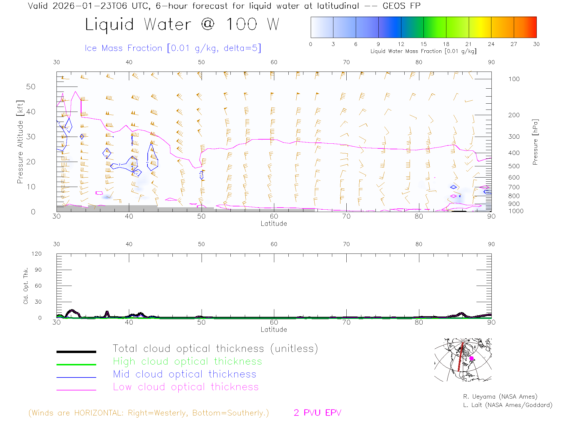 GEOS Forecast Cloud Water Content X-Section (100 W)