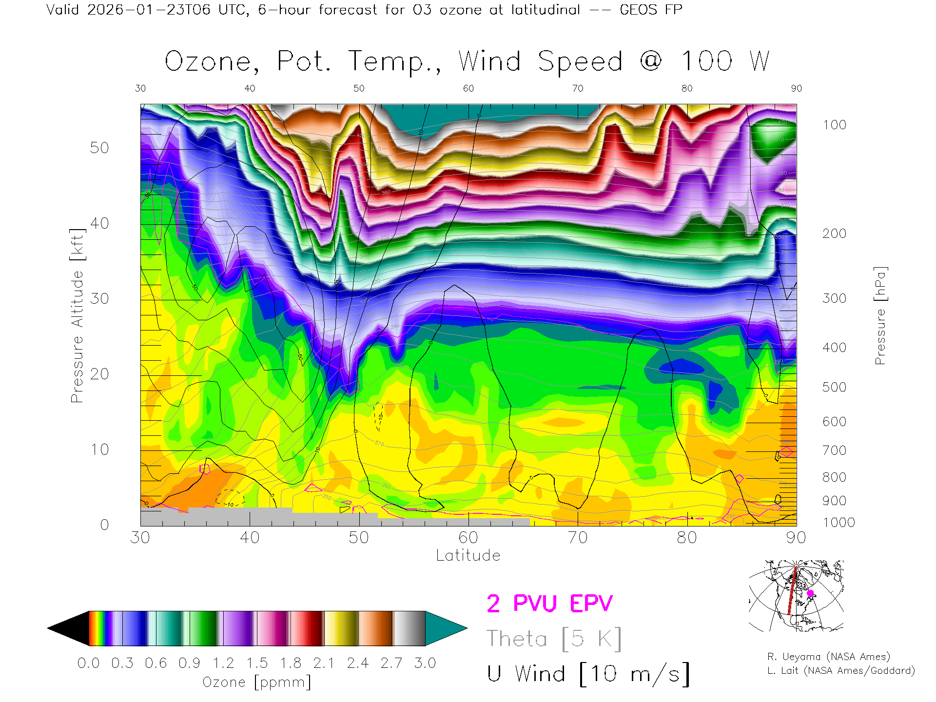 GEOS Forecast Ozone X-Section (100 W)