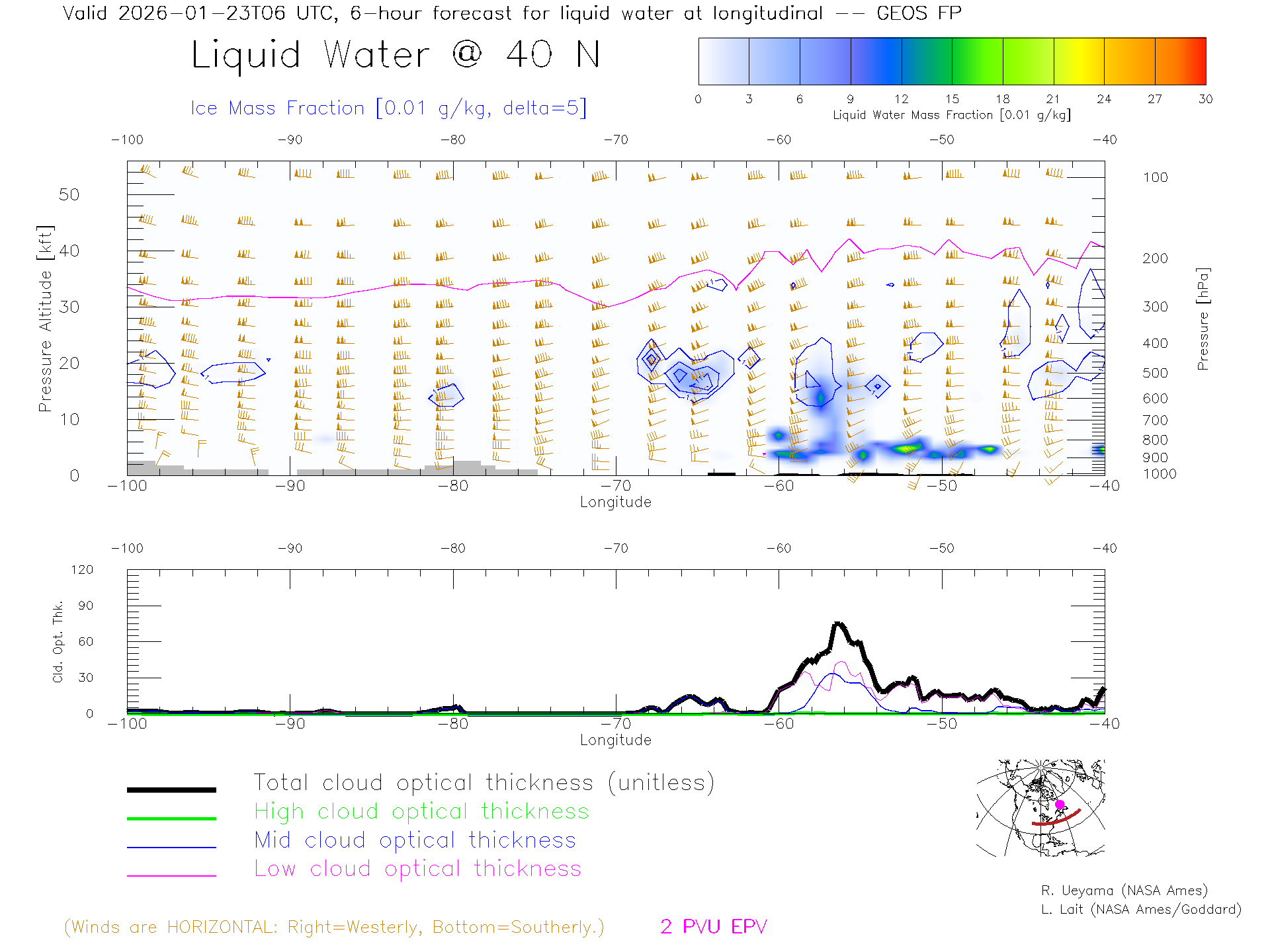 GEOS Forecast Cloud Water Content X-Section (40 N)