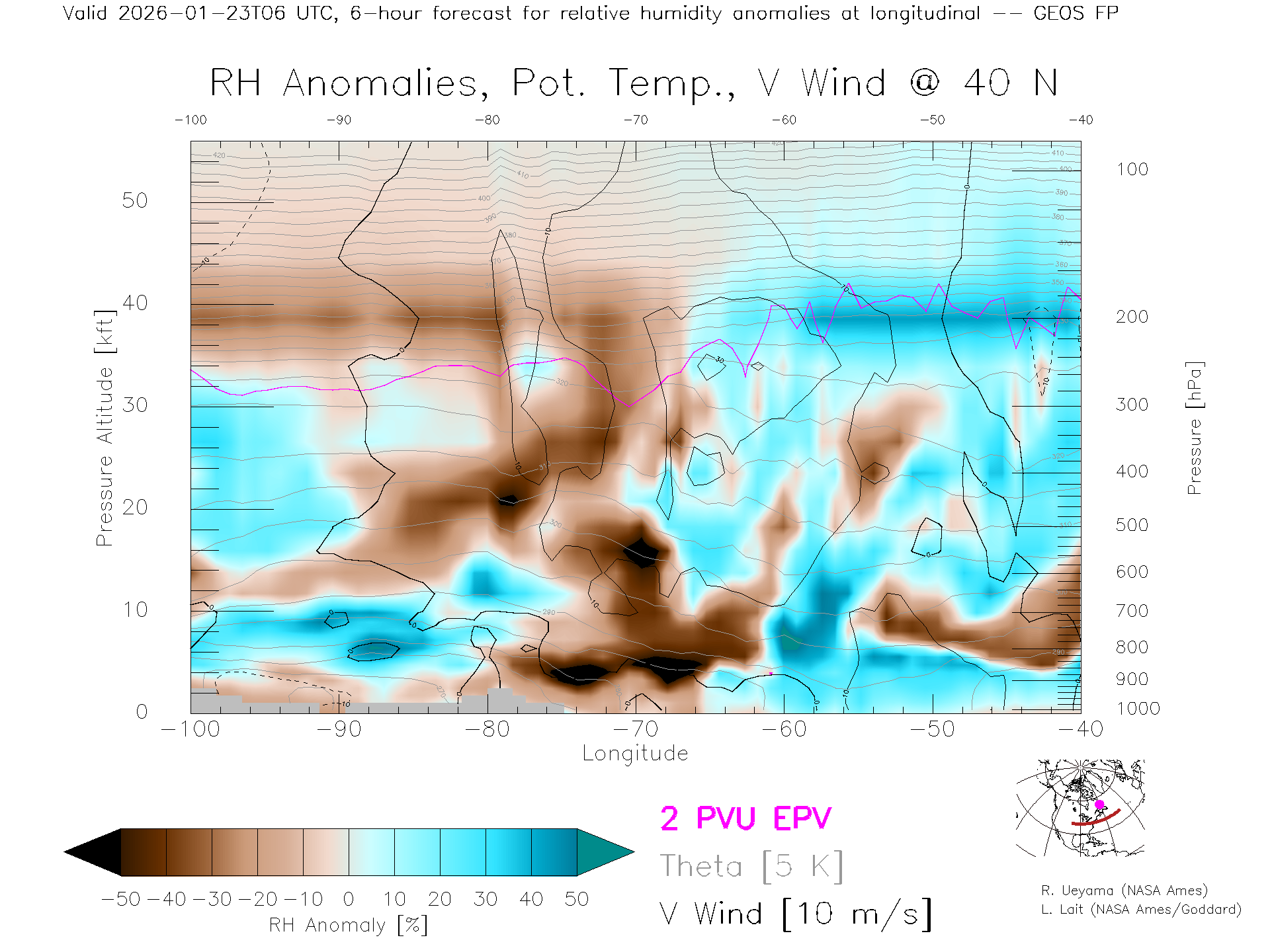 GEOS Forecast Rel. Hum. X-Section (40 N)