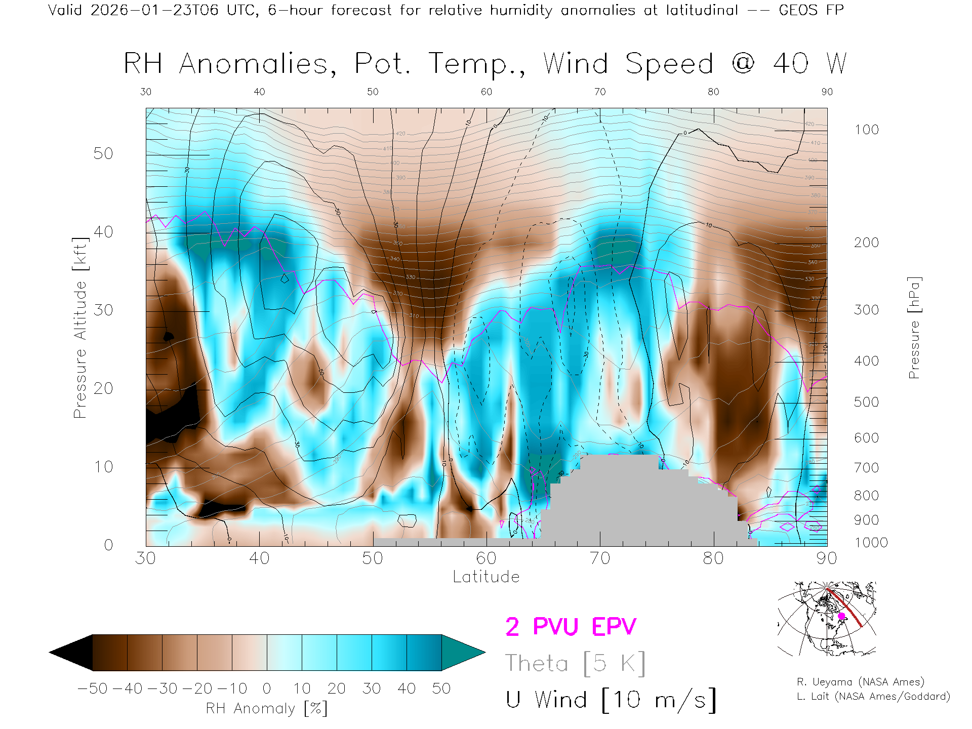 GEOS Forecast Rel. Hum. X-Section (40 W)