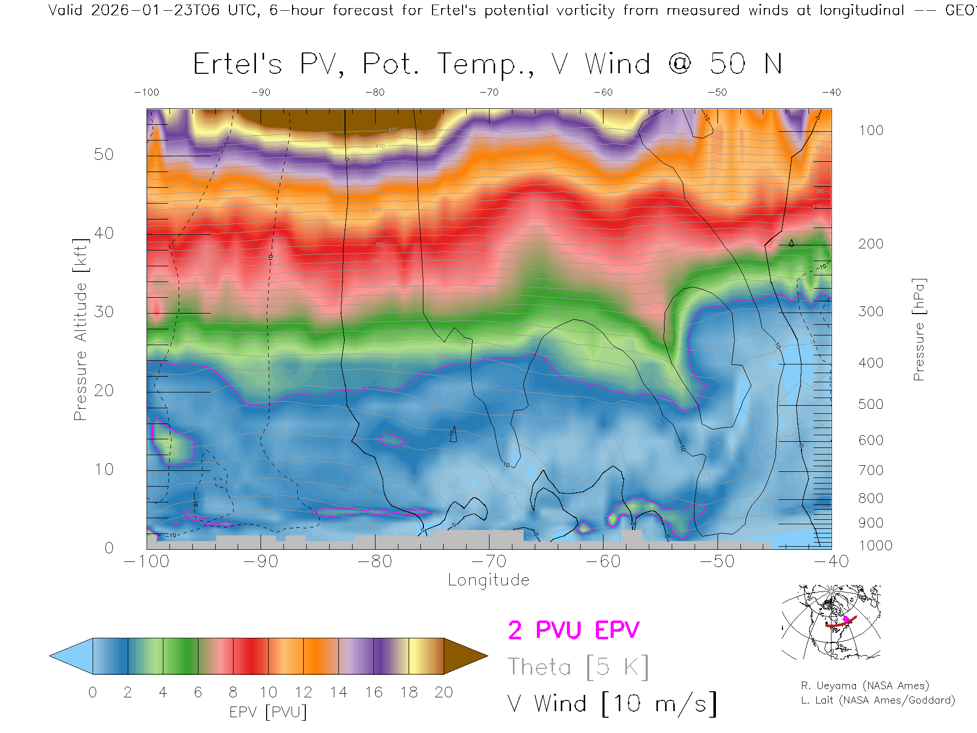 GEOS Forecast PV X-Section (50 N)