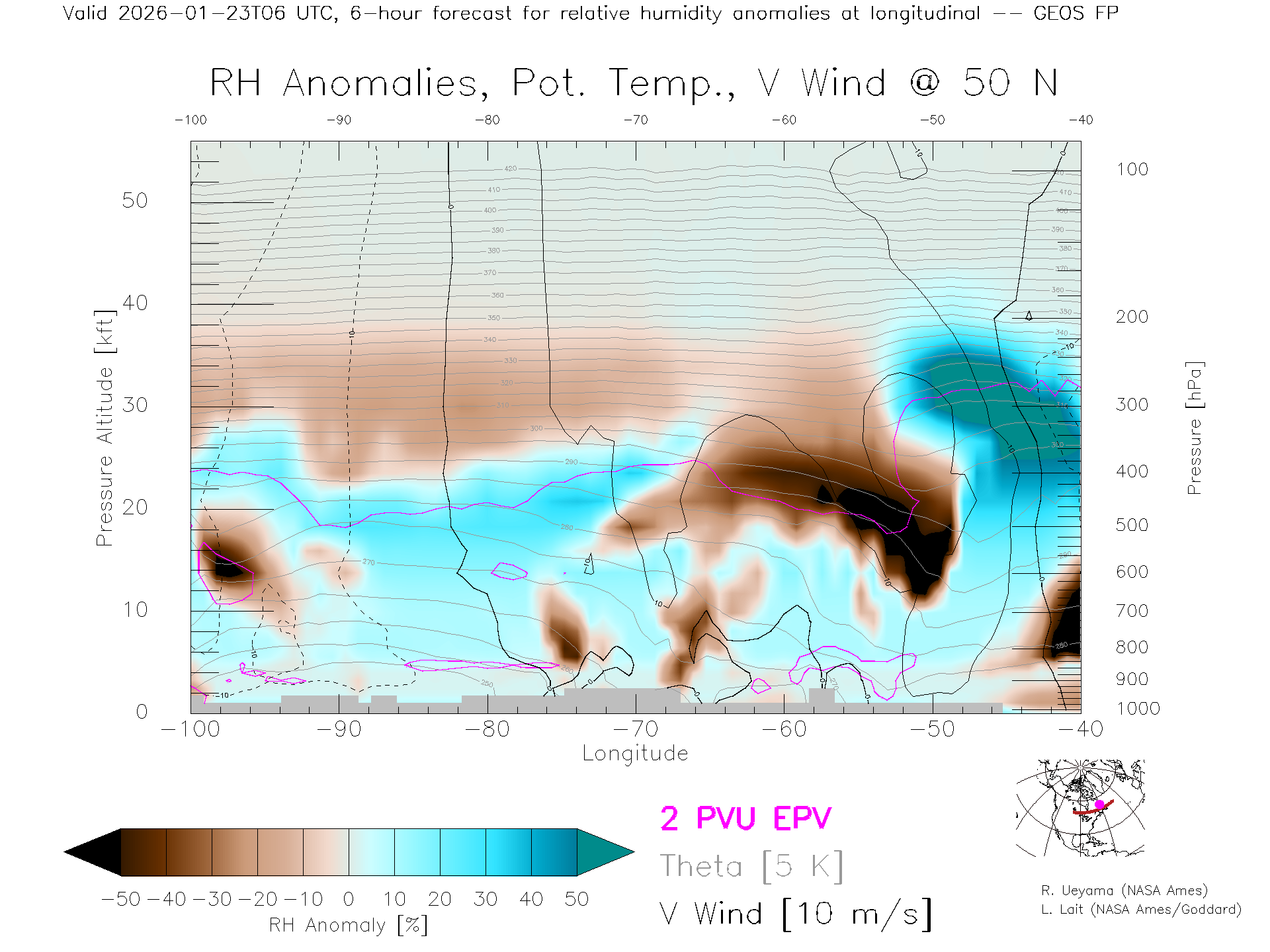 GEOS Forecast Rel. Hum. X-Section (50 N)
