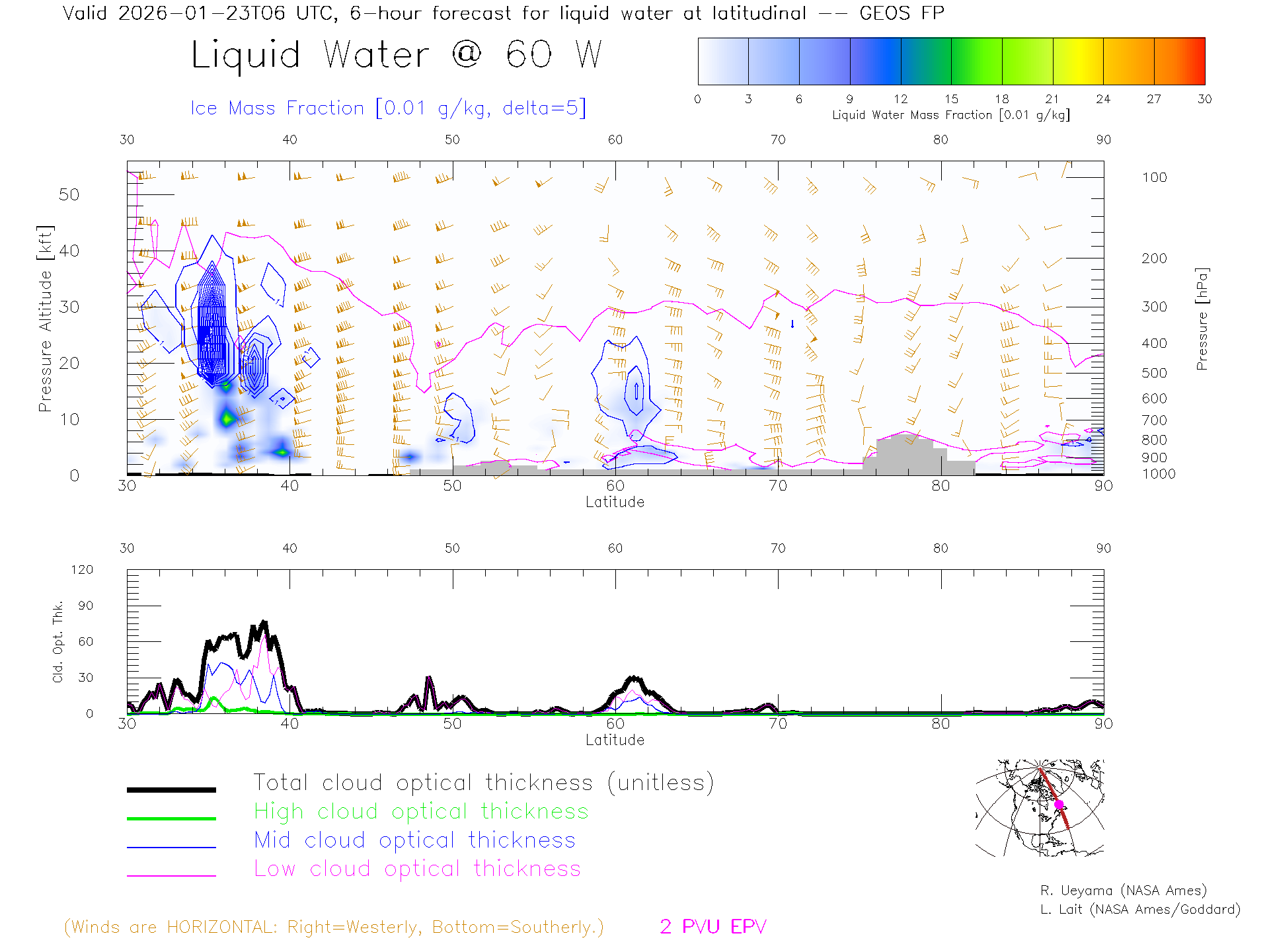 GEOS Forecast Cloud Water Content X-Section (60 W)