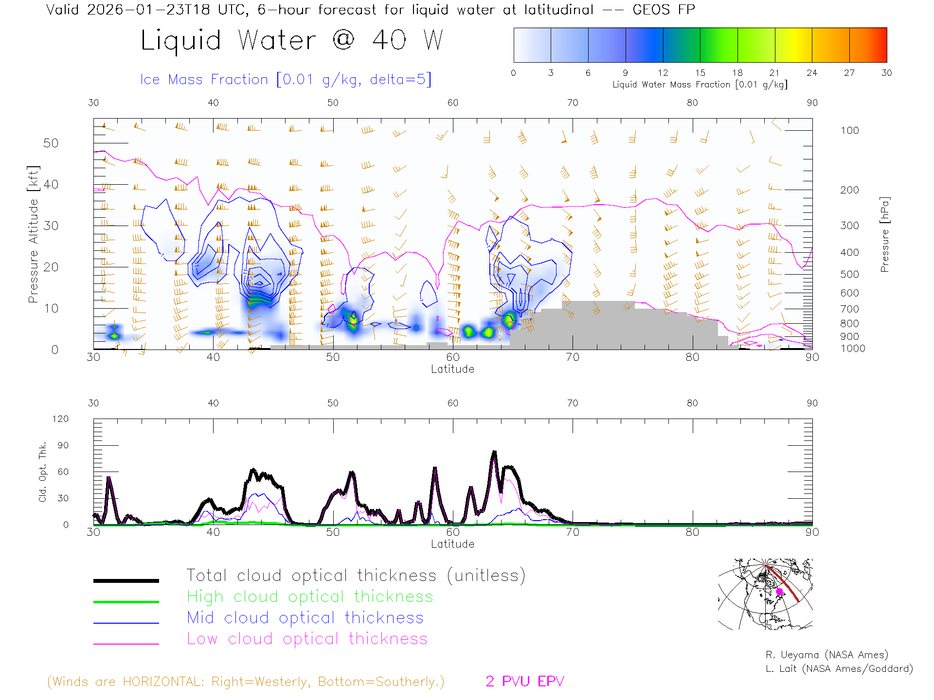 GEOS Forecast Cloud Water Content X-Section (40 W)