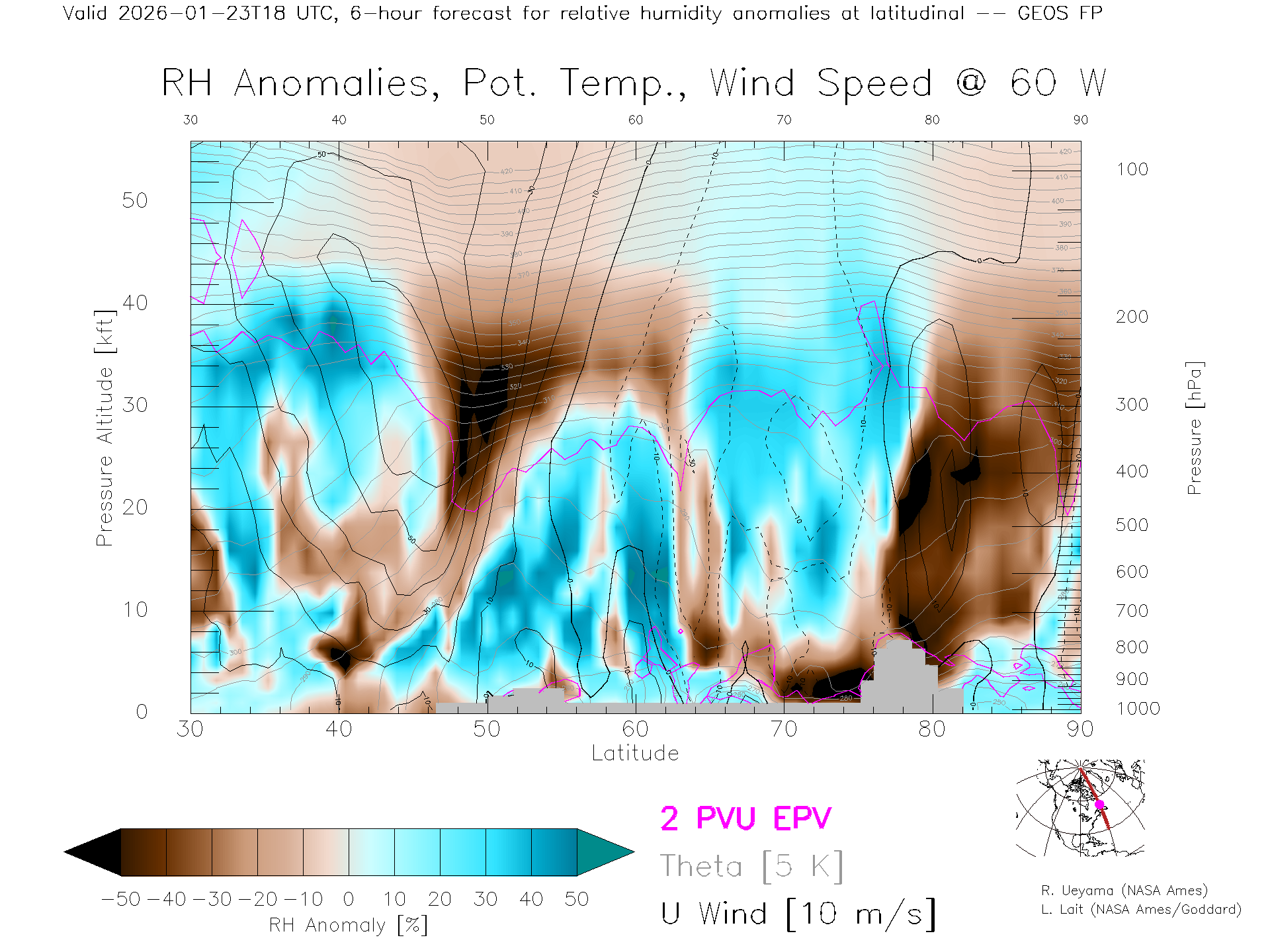 GEOS Forecast Rel. Hum. X-Section (60 W)