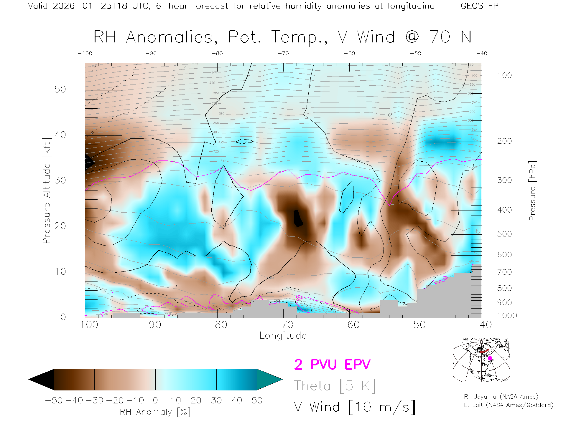 GEOS Forecast Rel. Hum. X-Section (70 N)