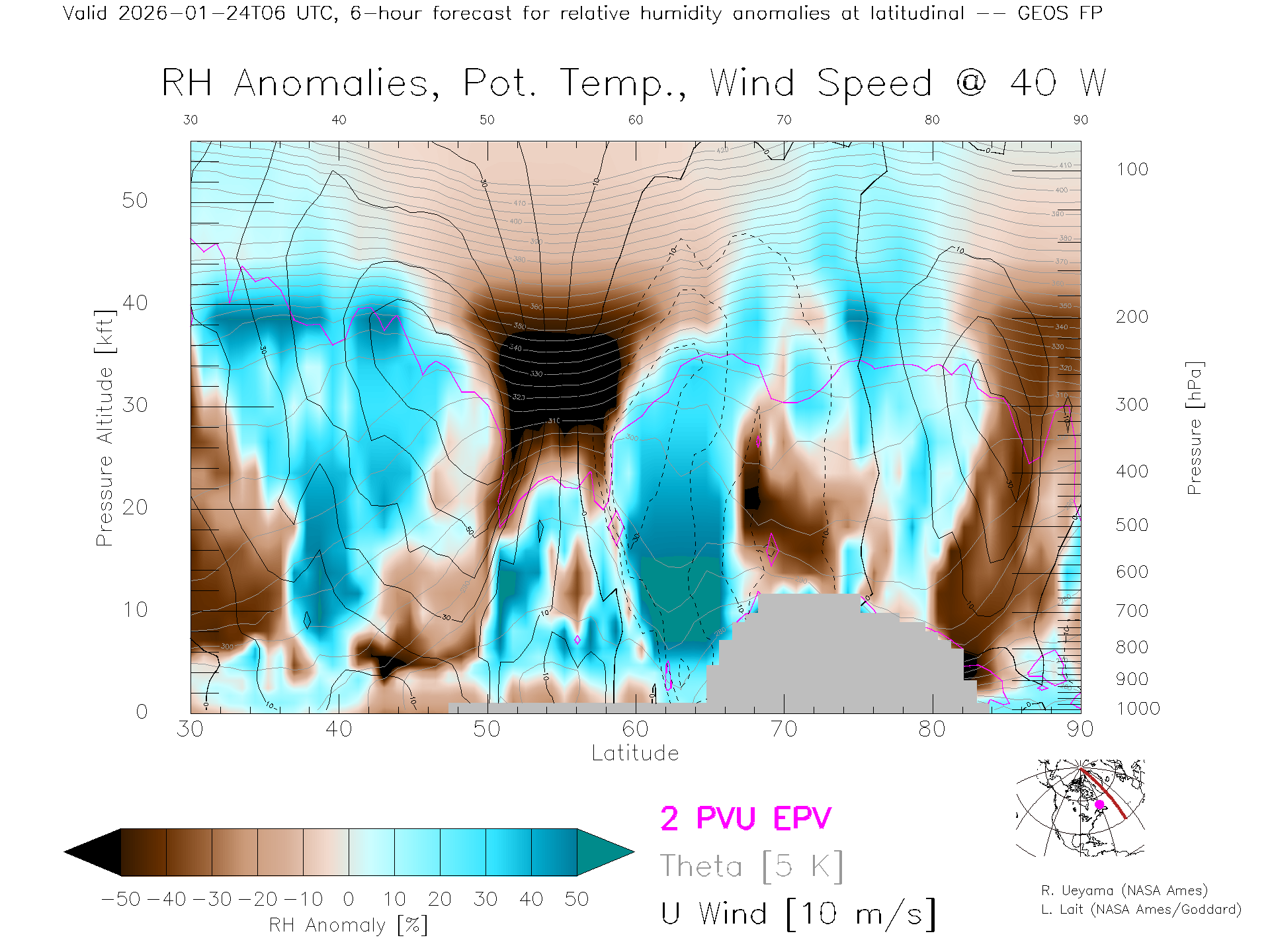 GEOS Forecast Rel. Hum. X-Section (40 W)