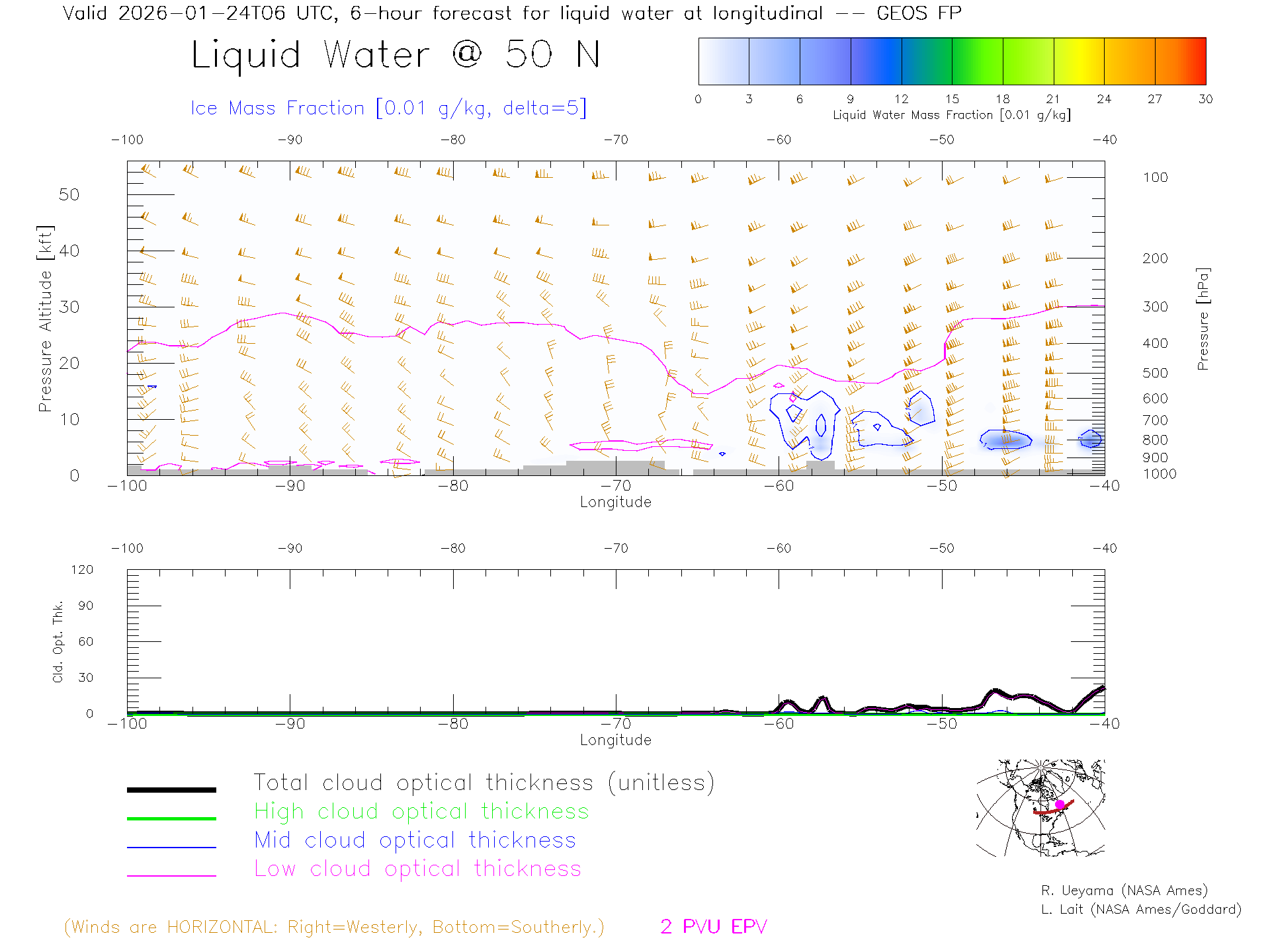 GEOS Forecast Cloud Water Content X-Section (50 N)