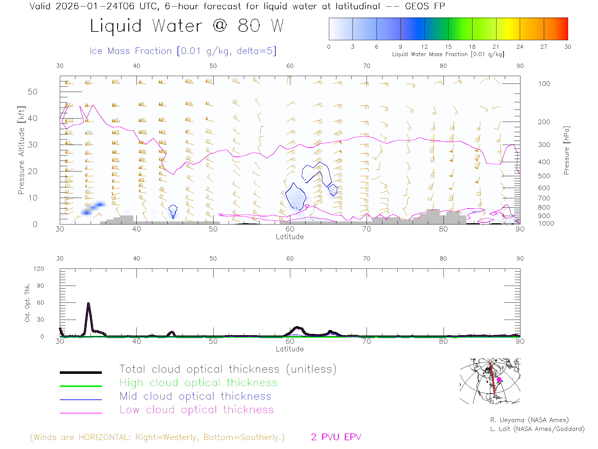 GEOS Forecast Cloud Water Content X-Section (80 W)