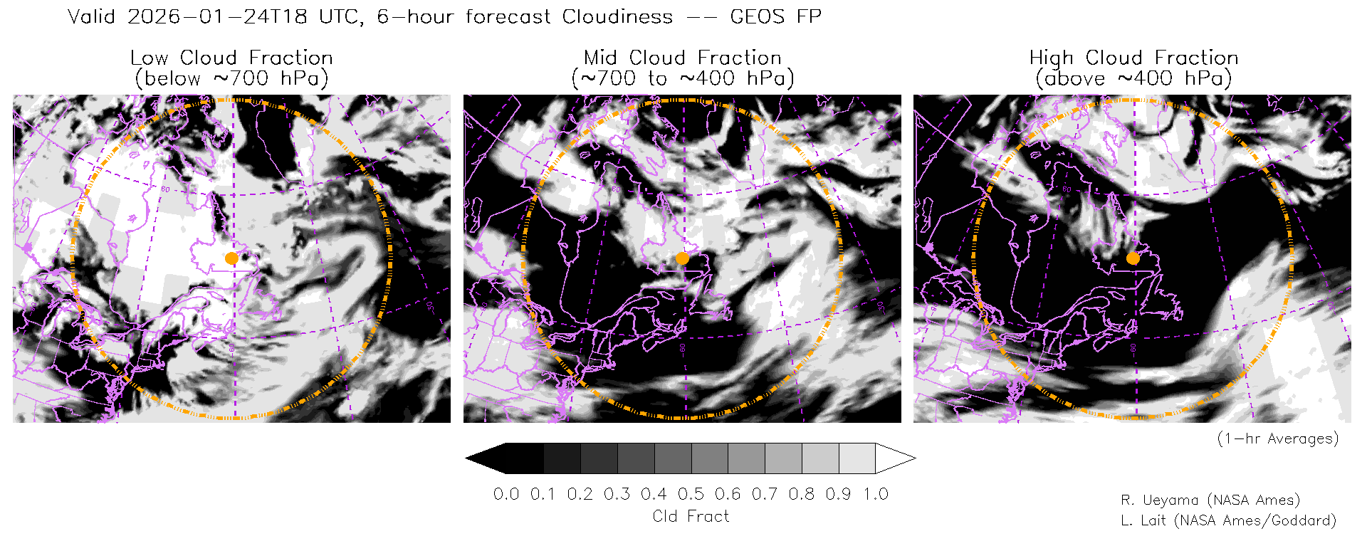GEOS Forecast Cloud Fraction (High, Mid, Low)