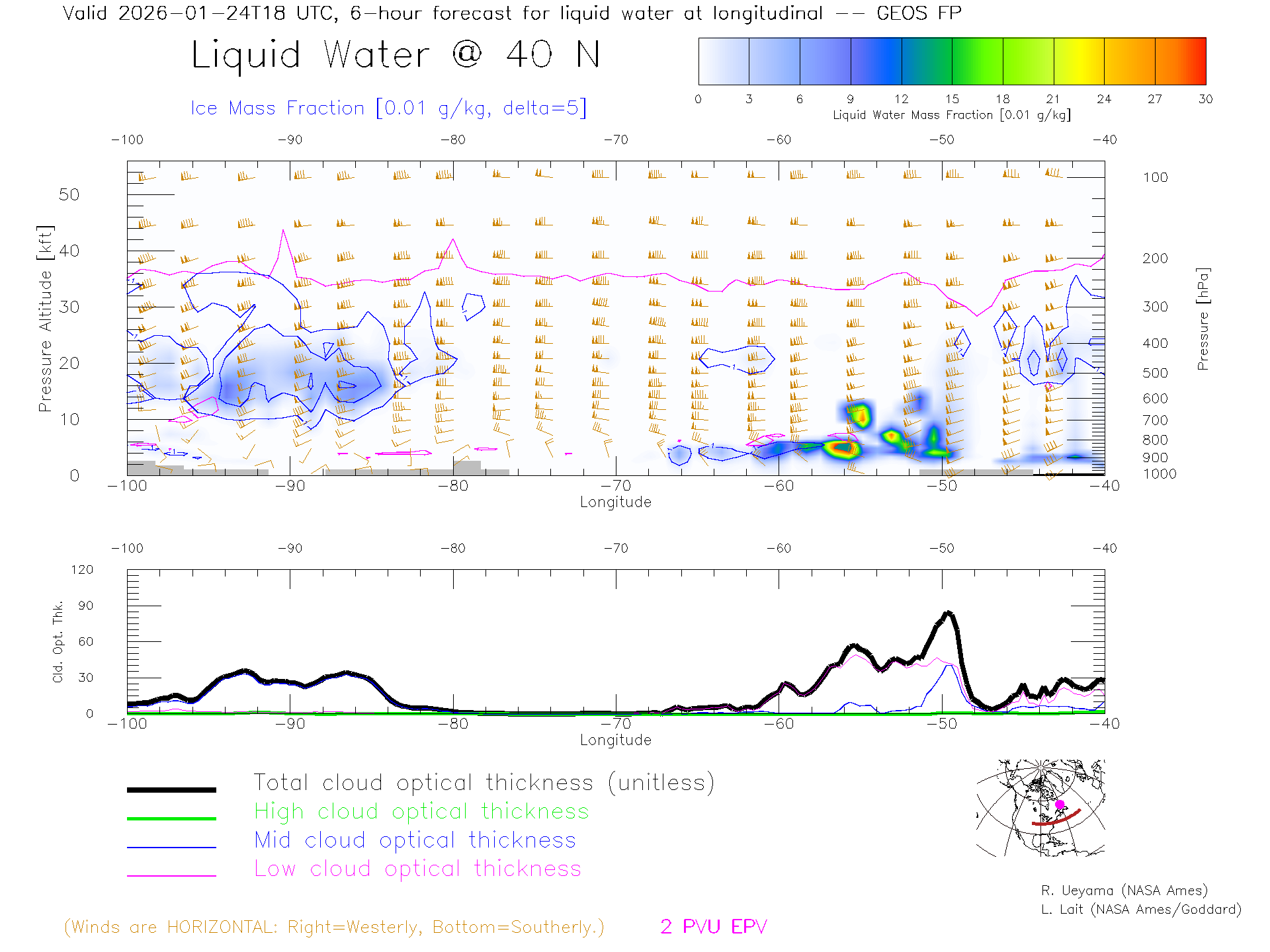GEOS Forecast Cloud Water Content X-Section (40 N)