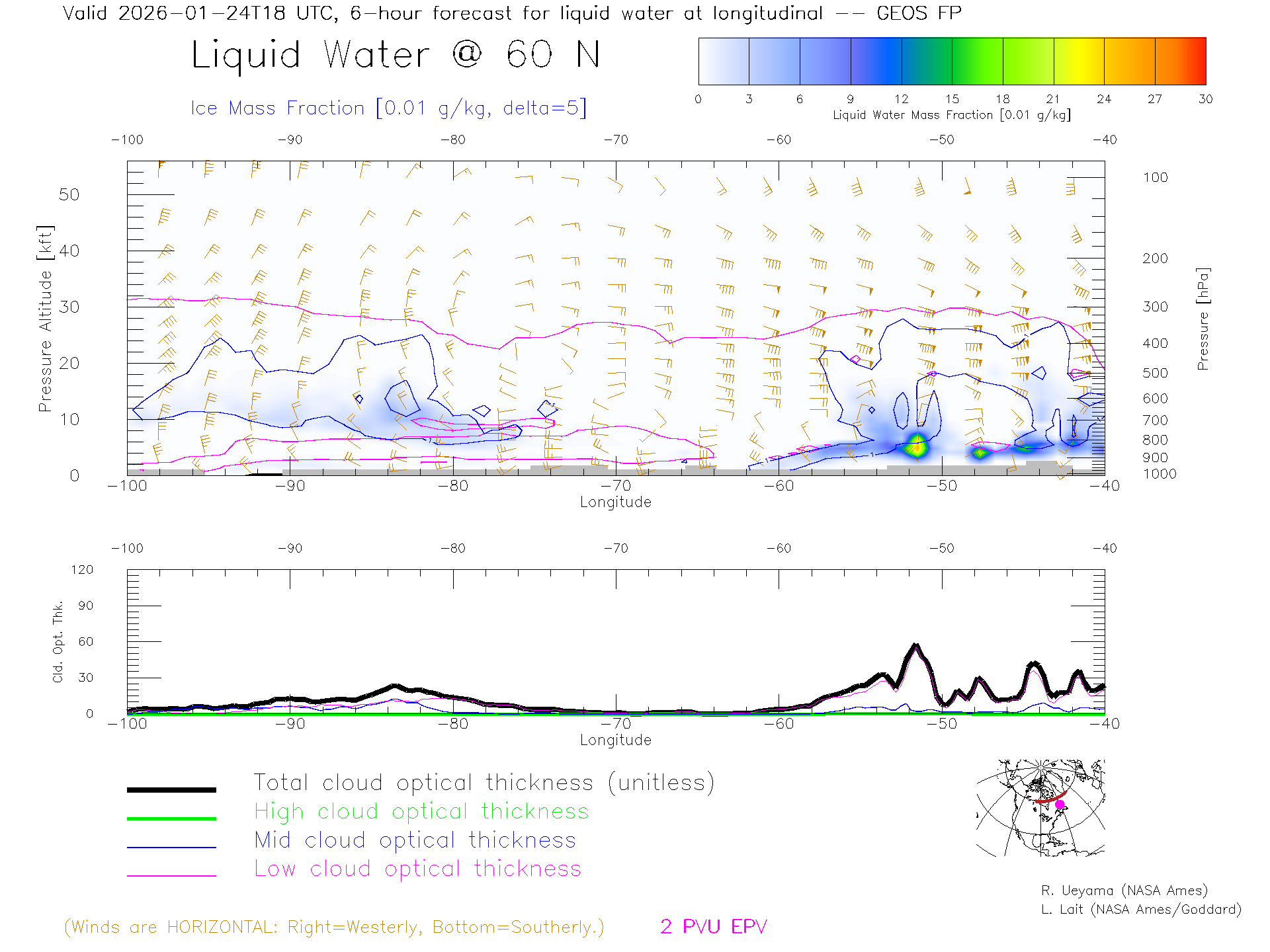 GEOS Forecast Cloud Water Content X-Section (60 N)