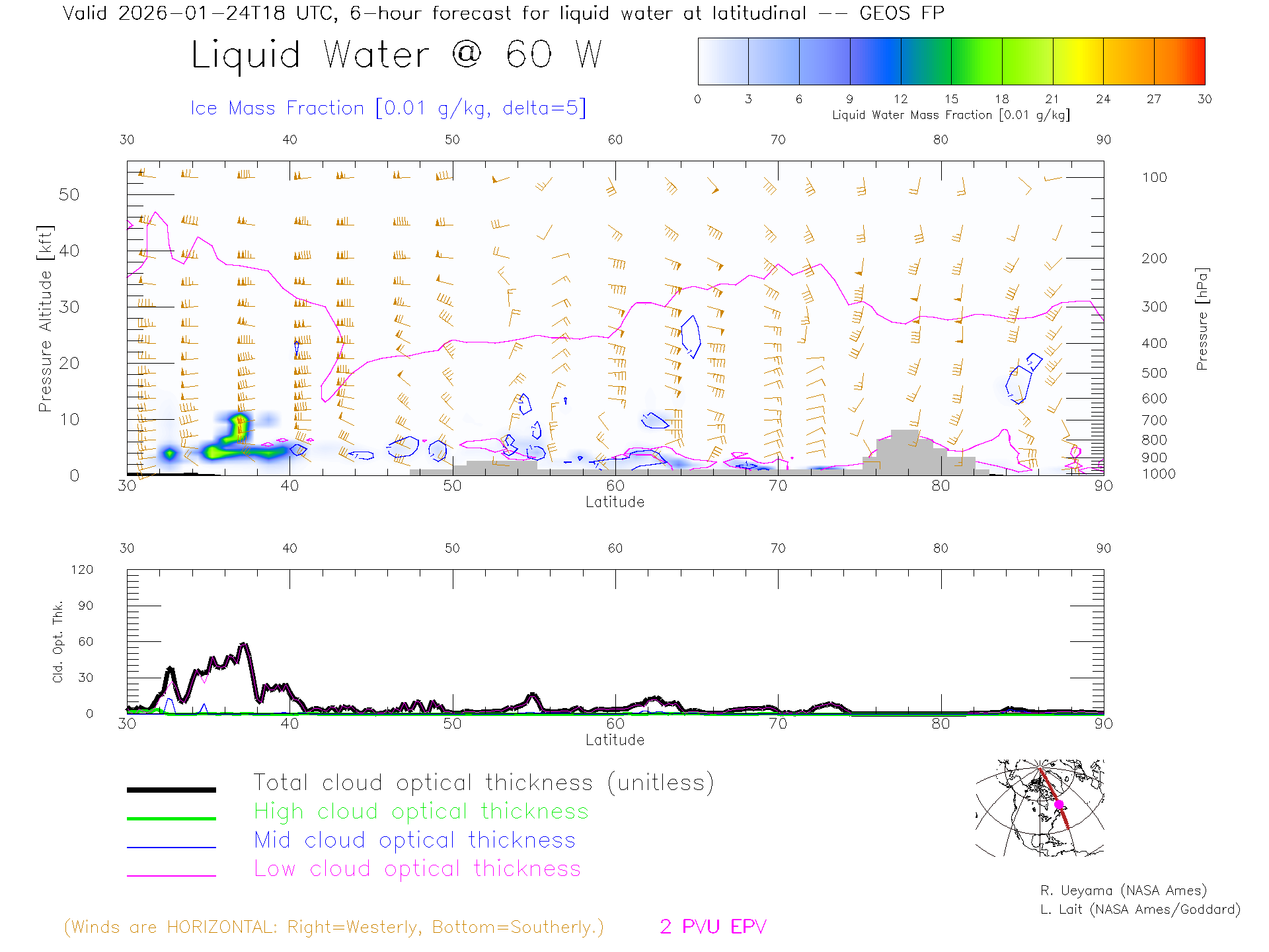 GEOS Forecast Cloud Water Content X-Section (60 W)