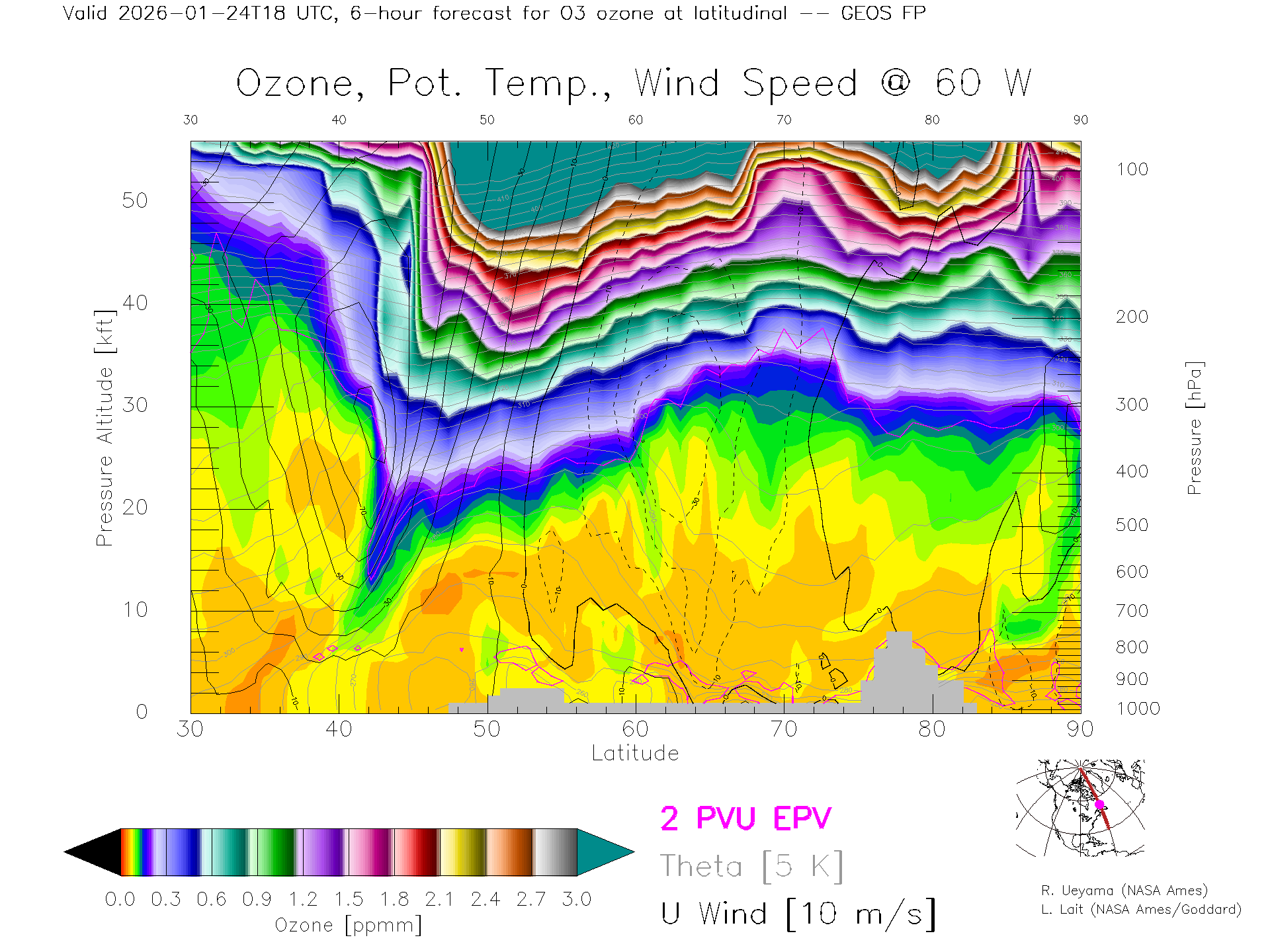 GEOS Forecast Ozone X-Section (60 W)