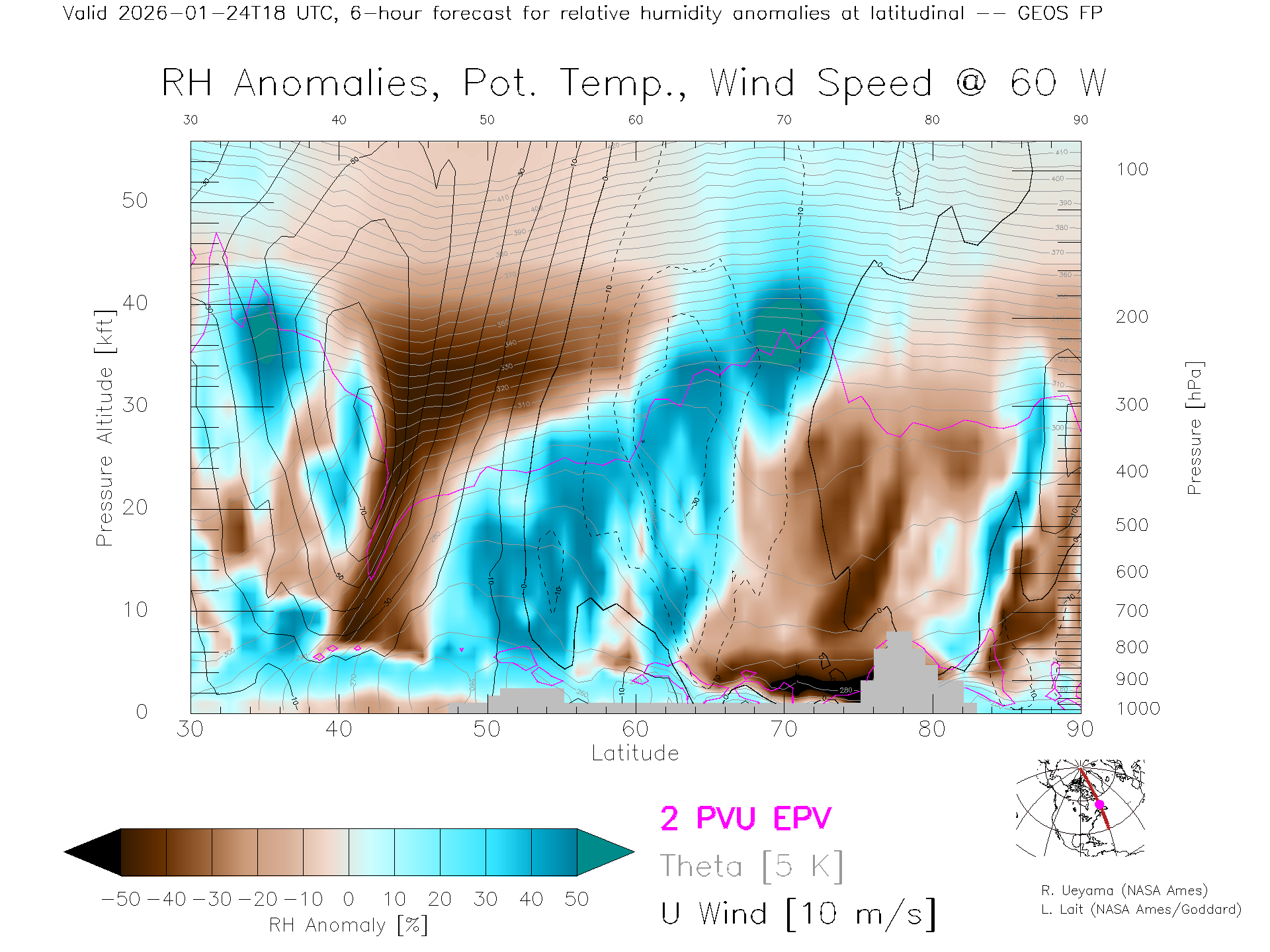 GEOS Forecast Rel. Hum. X-Section (60 W)