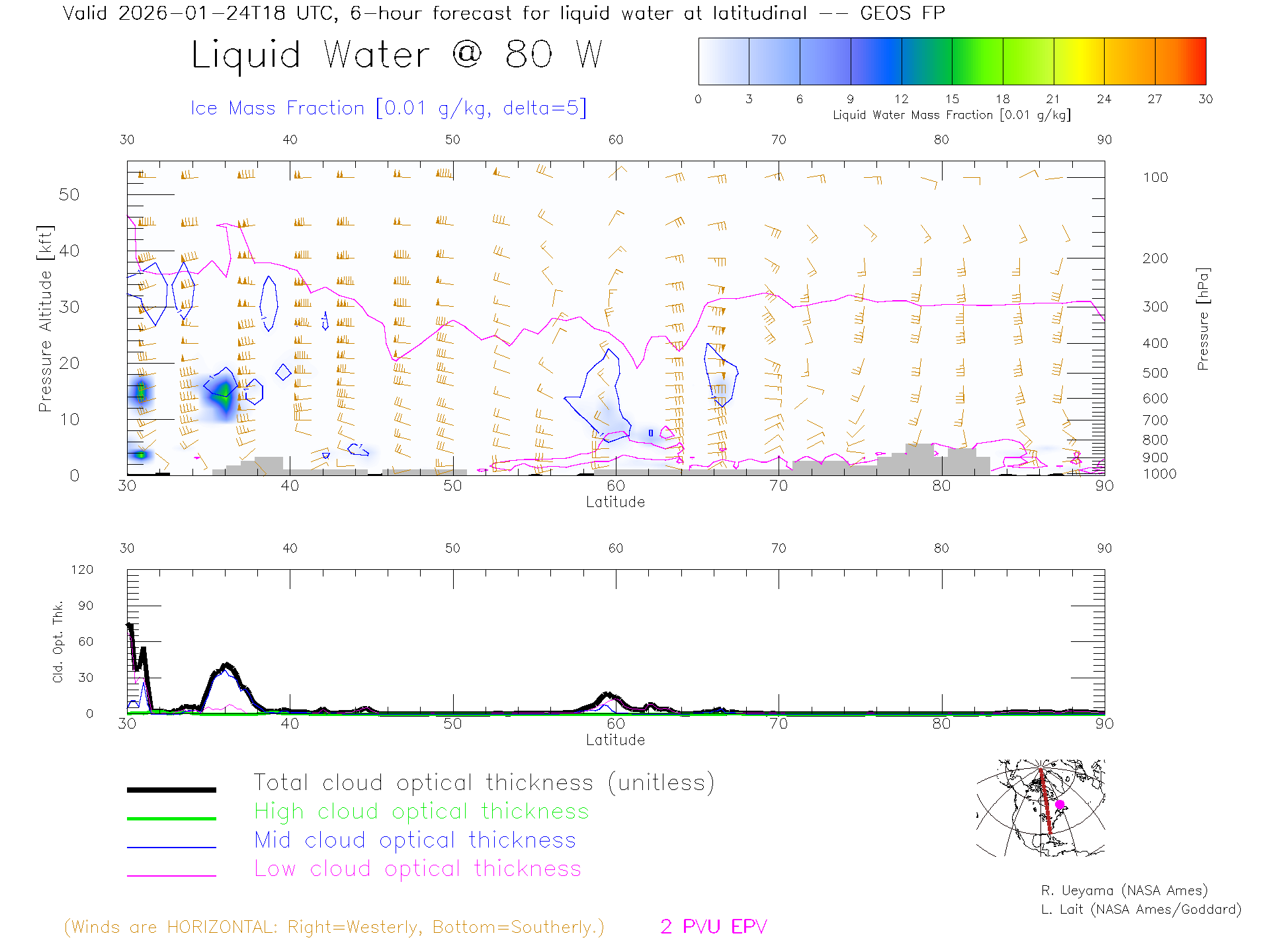 GEOS Forecast Cloud Water Content X-Section (80 W)