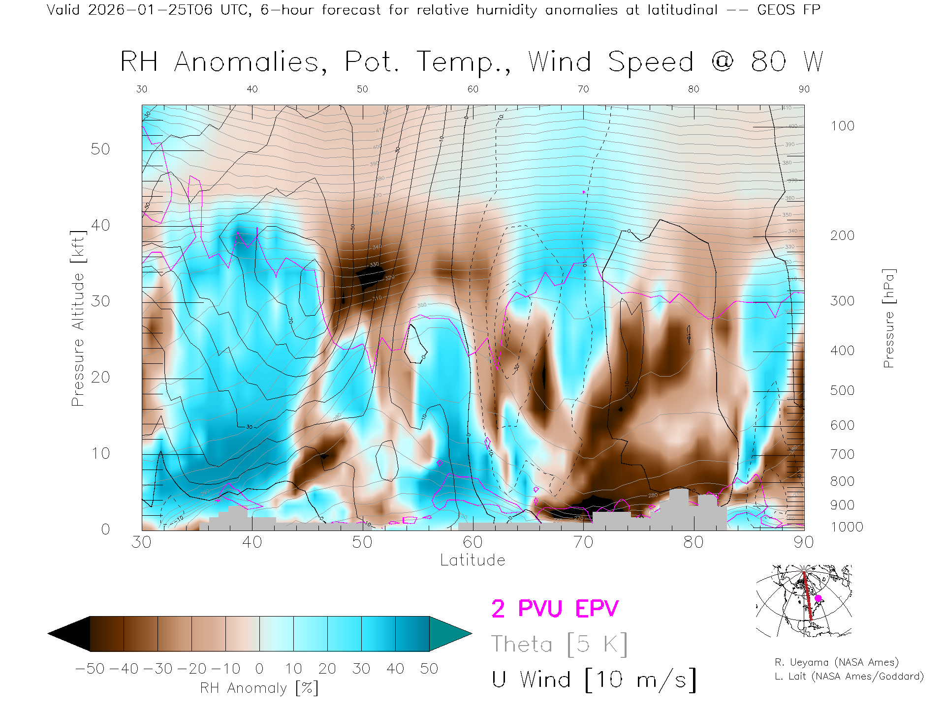GEOS Forecast Rel. Hum. X-Section (80 W)