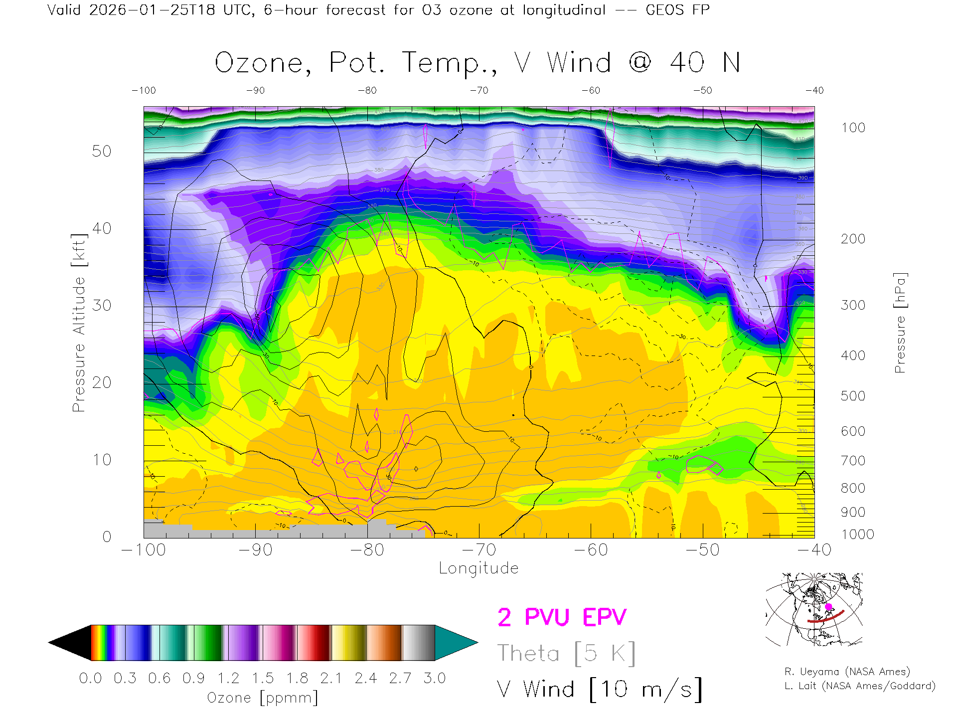GEOS Forecast Ozone X-Section (40 N)