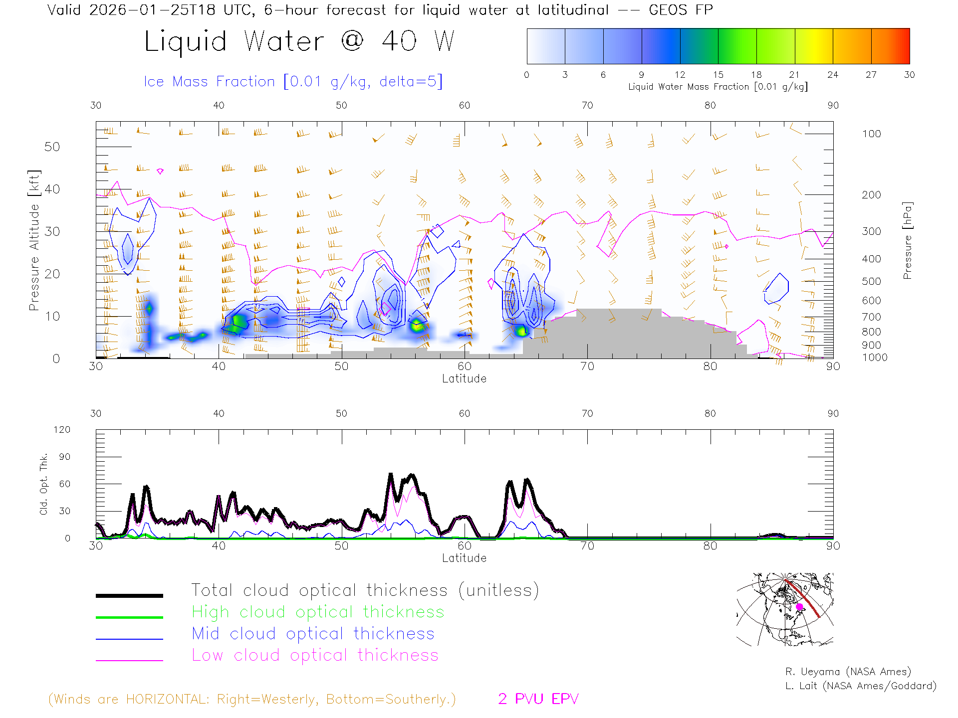 GEOS Forecast Cloud Water Content X-Section (40 W)