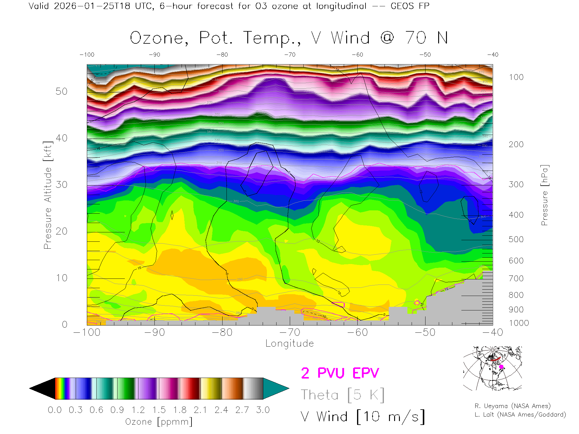 GEOS Forecast Ozone X-Section (70 N)