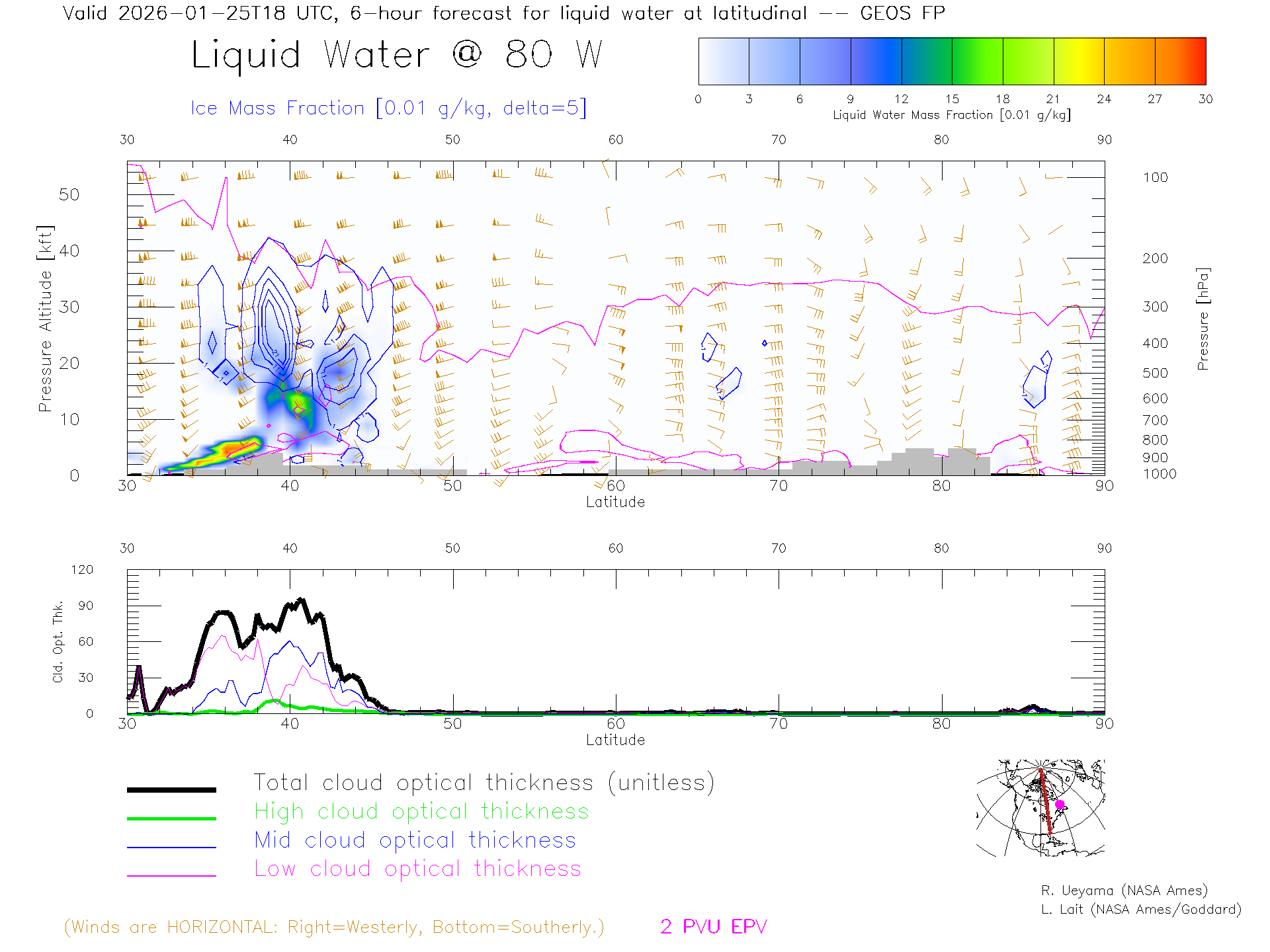 GEOS Forecast Cloud Water Content X-Section (80 W)