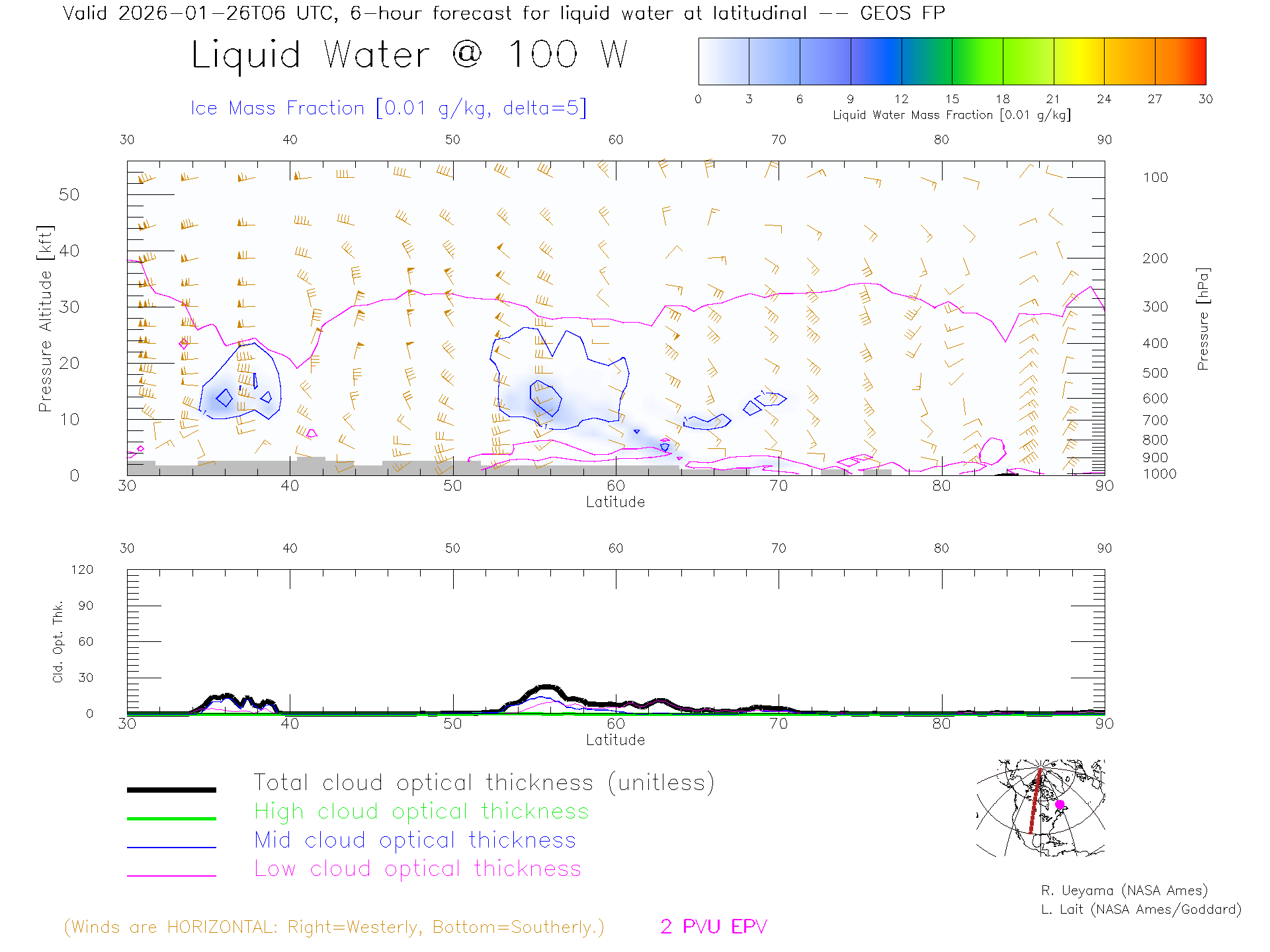 GEOS Forecast Cloud Water Content X-Section (100 W)