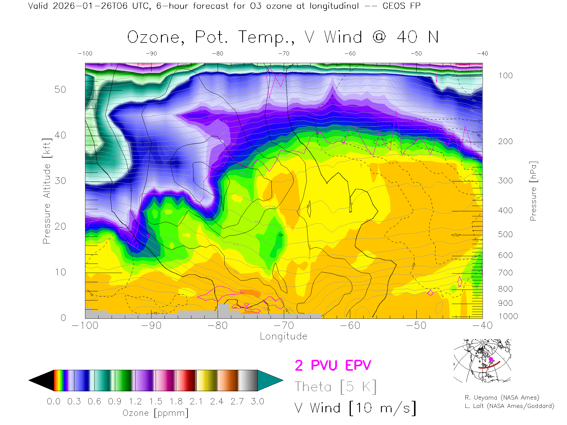 GEOS Forecast Ozone X-Section (40 N)