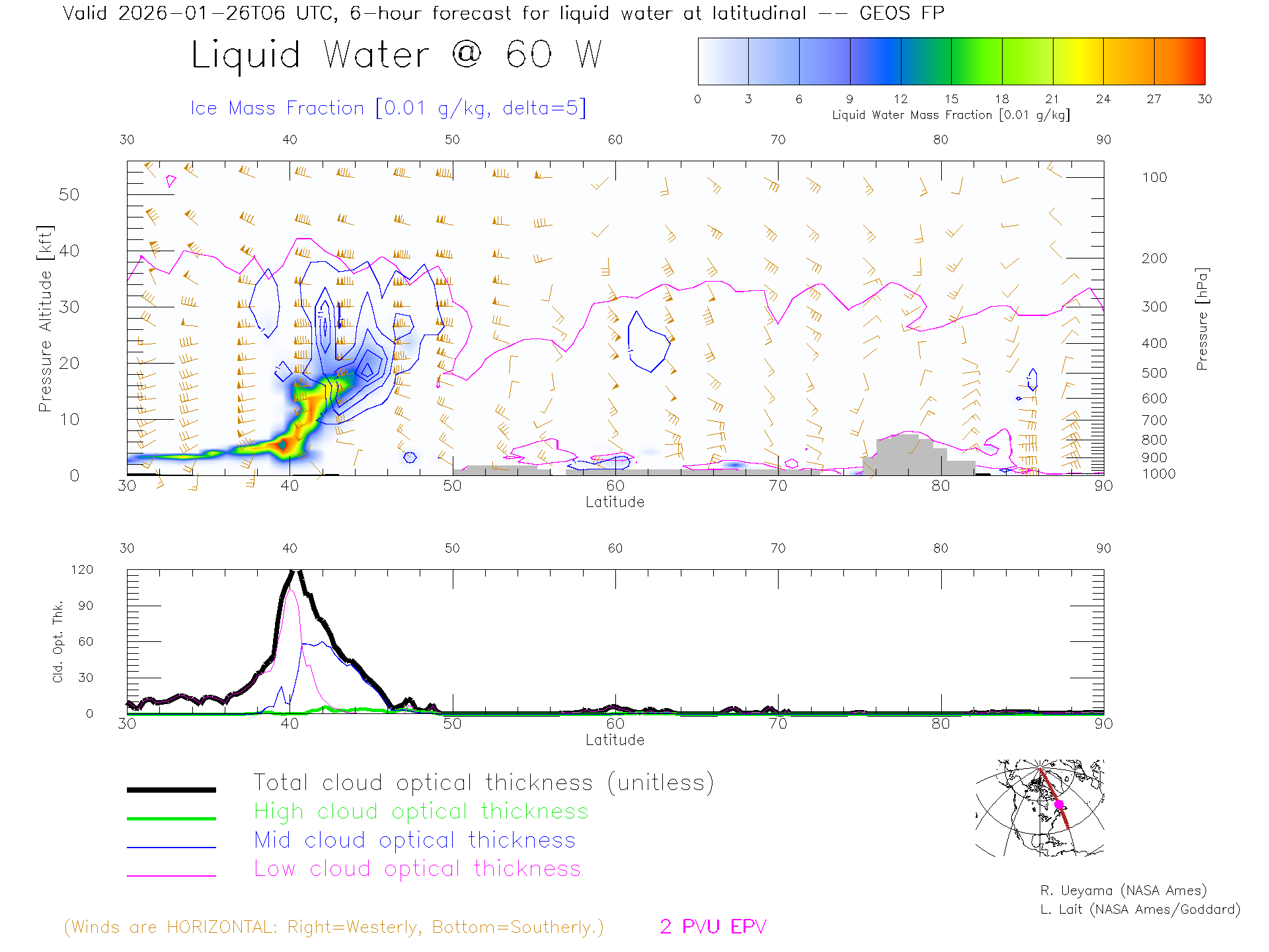 GEOS Forecast Cloud Water Content X-Section (60 W)