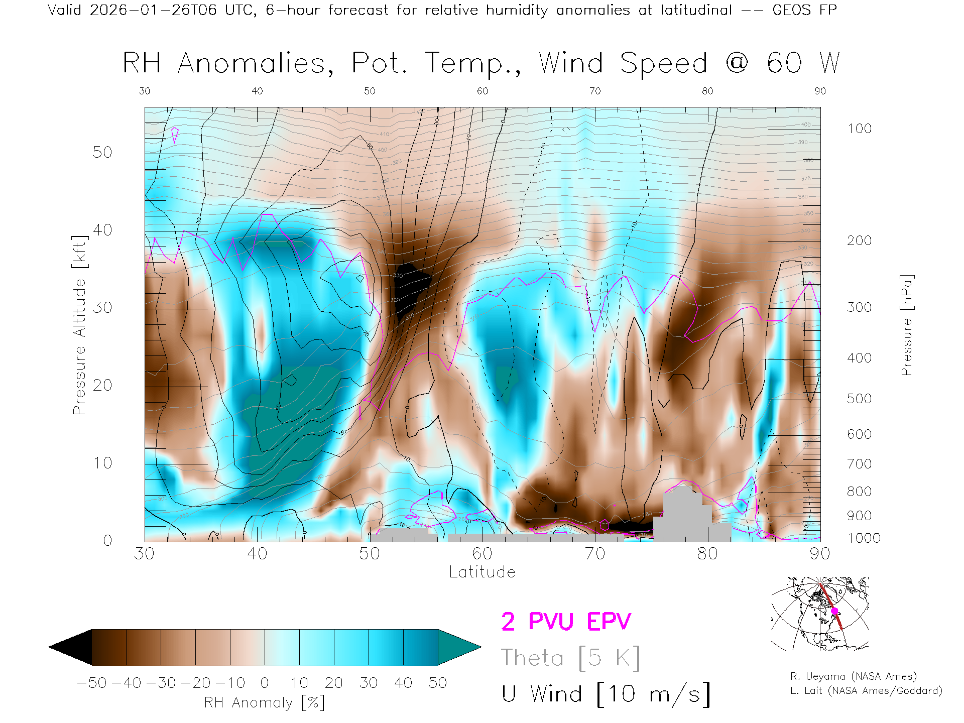 GEOS Forecast Rel. Hum. X-Section (60 W)