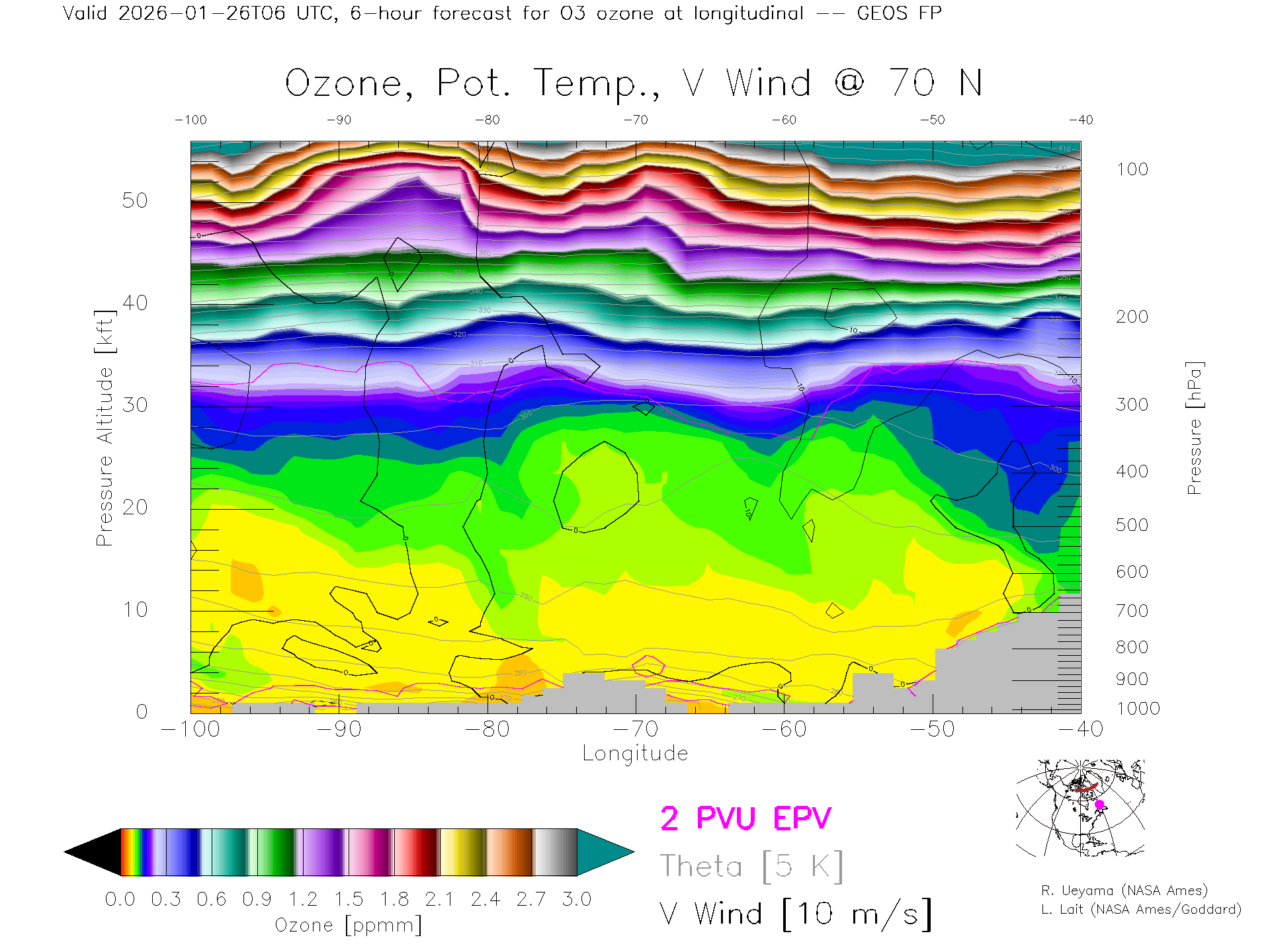 GEOS Forecast Ozone X-Section (70 N)