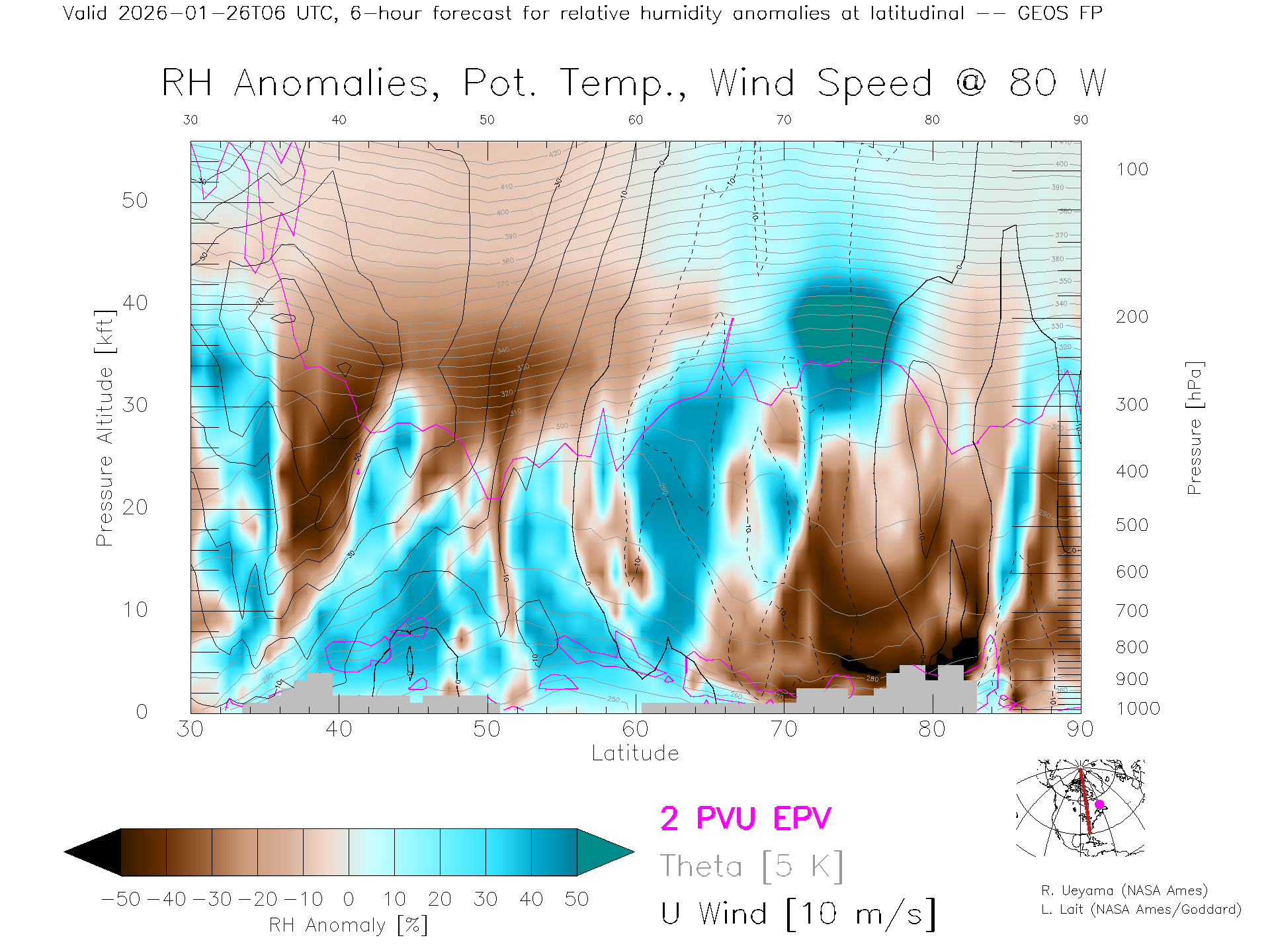 GEOS Forecast Rel. Hum. X-Section (80 W)
