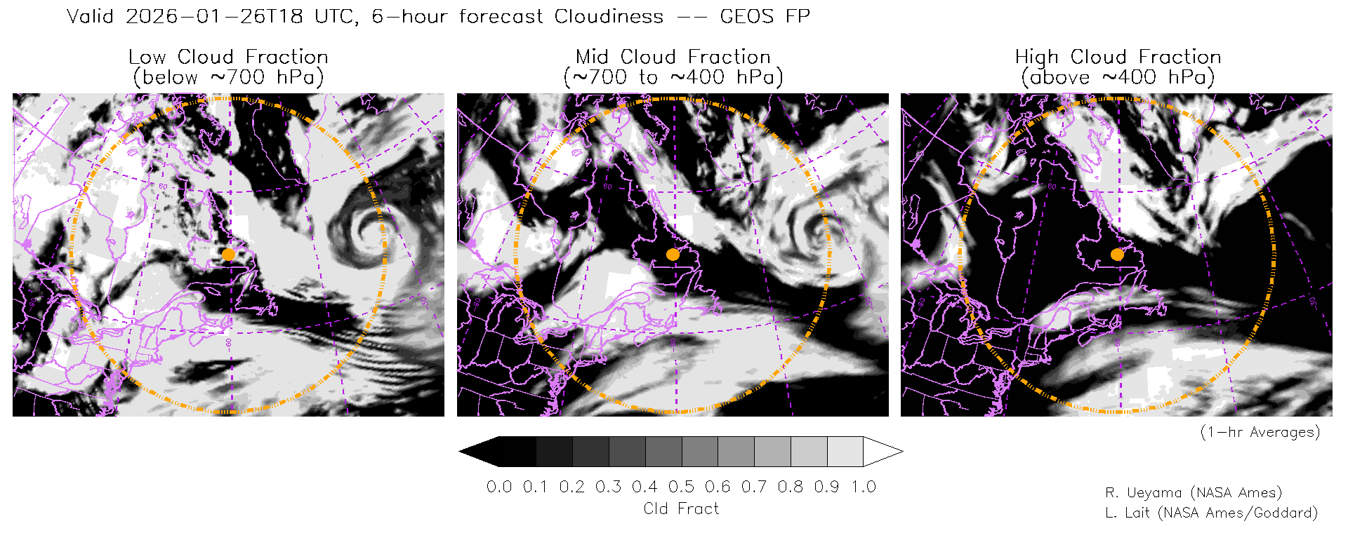 GEOS Forecast Cloud Fraction (High, Mid, Low)