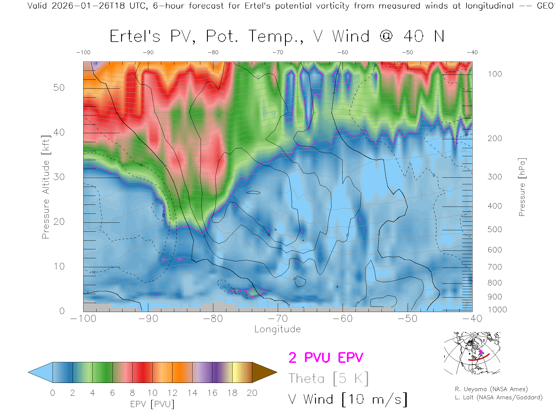 GEOS Forecast PV X-Section (40 N)