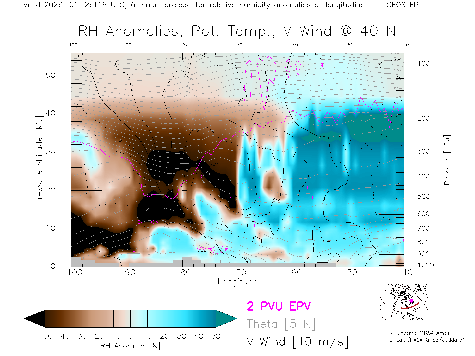 GEOS Forecast Rel. Hum. X-Section (40 N)
