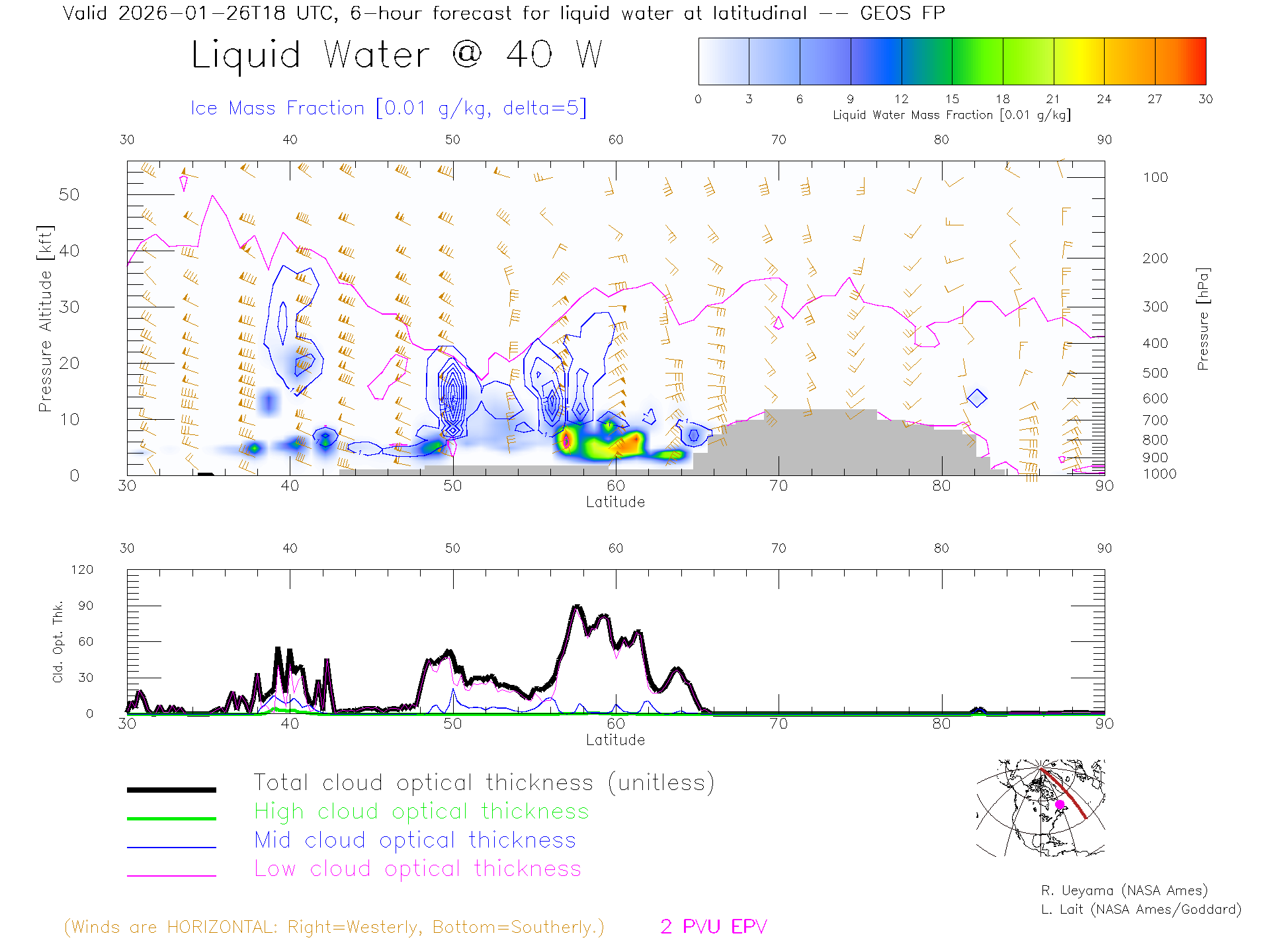 GEOS Forecast Cloud Water Content X-Section (40 W)
