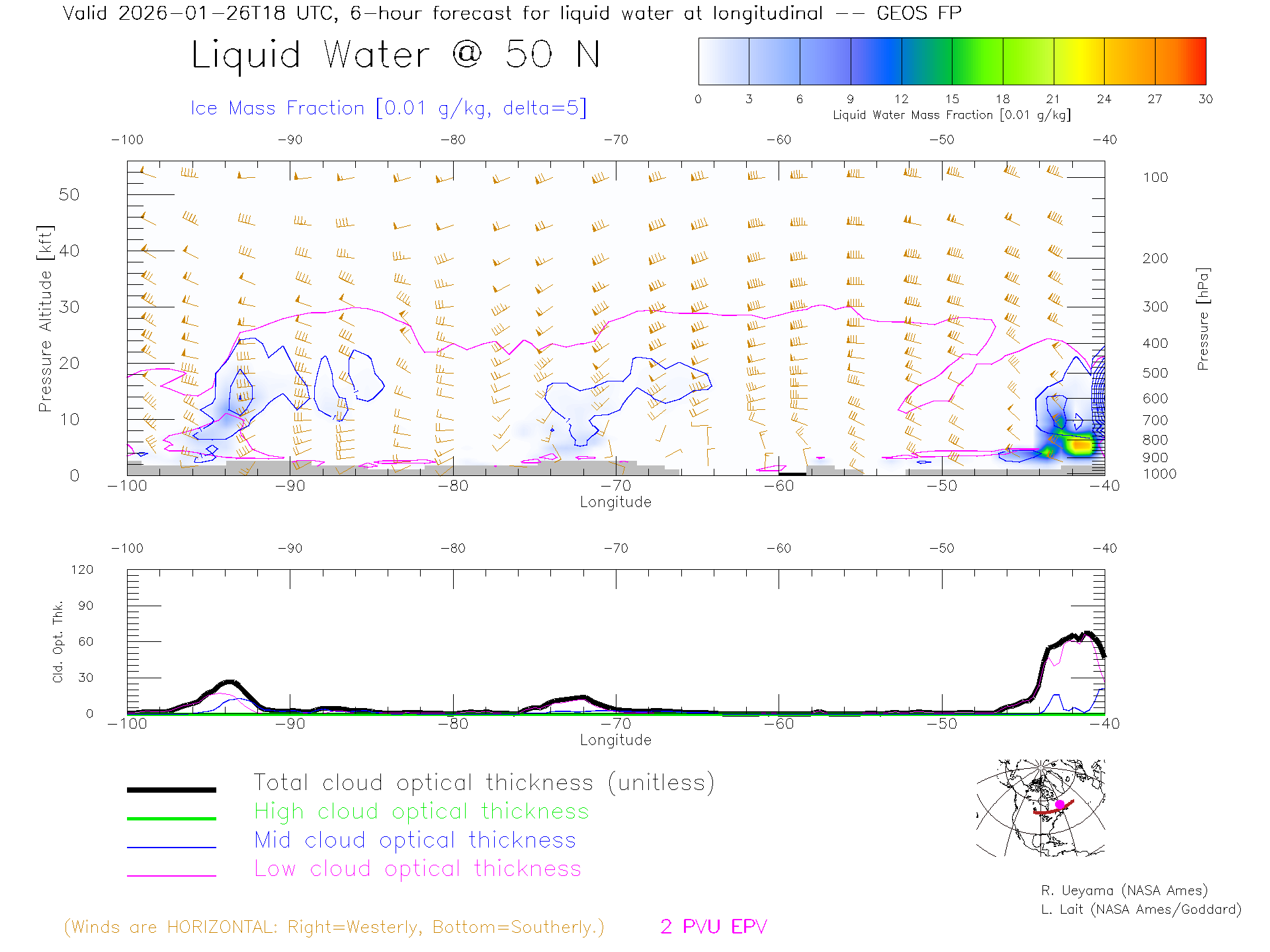 GEOS Forecast Cloud Water Content X-Section (50 N)