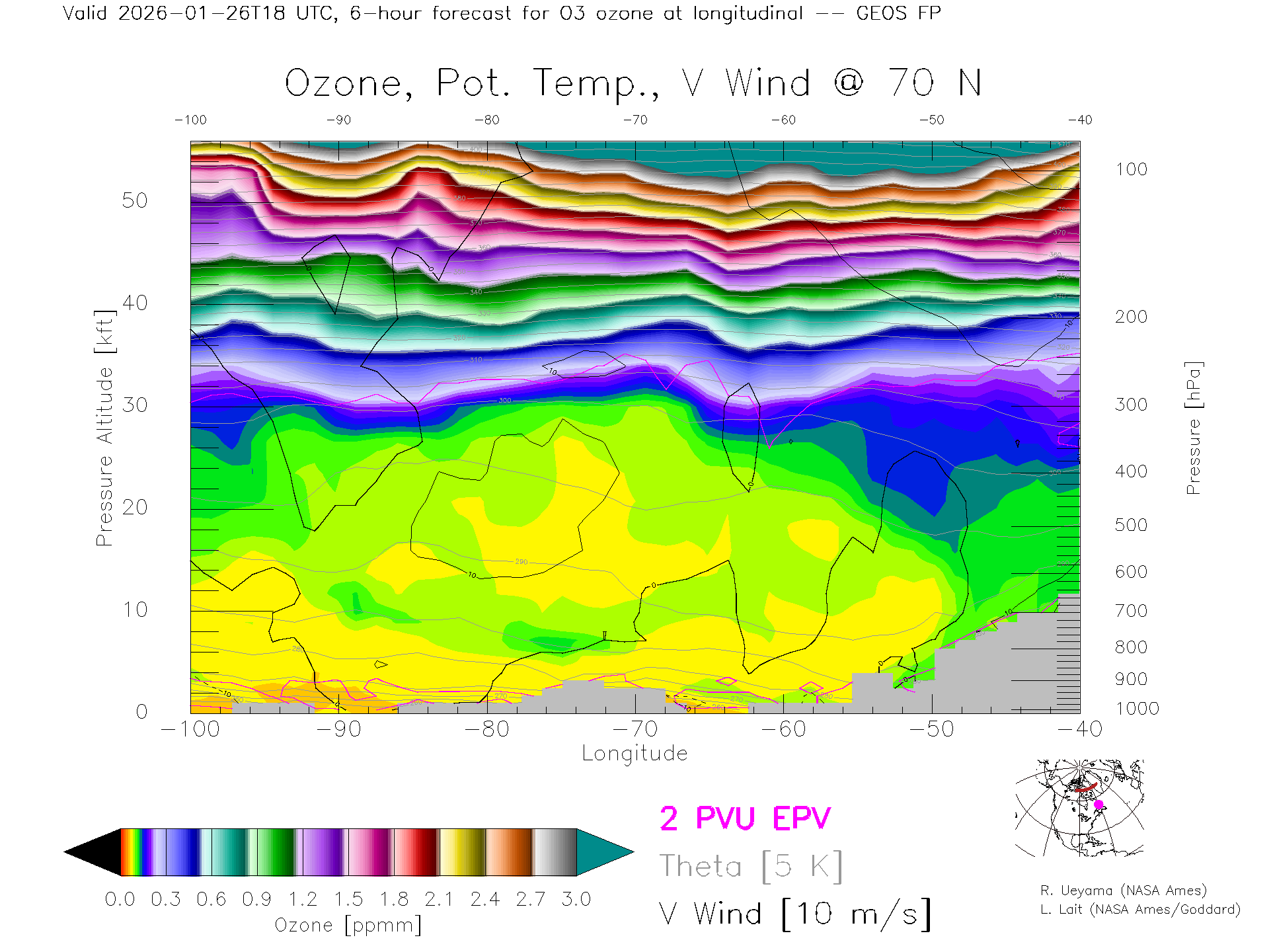 GEOS Forecast Ozone X-Section (70 N)
