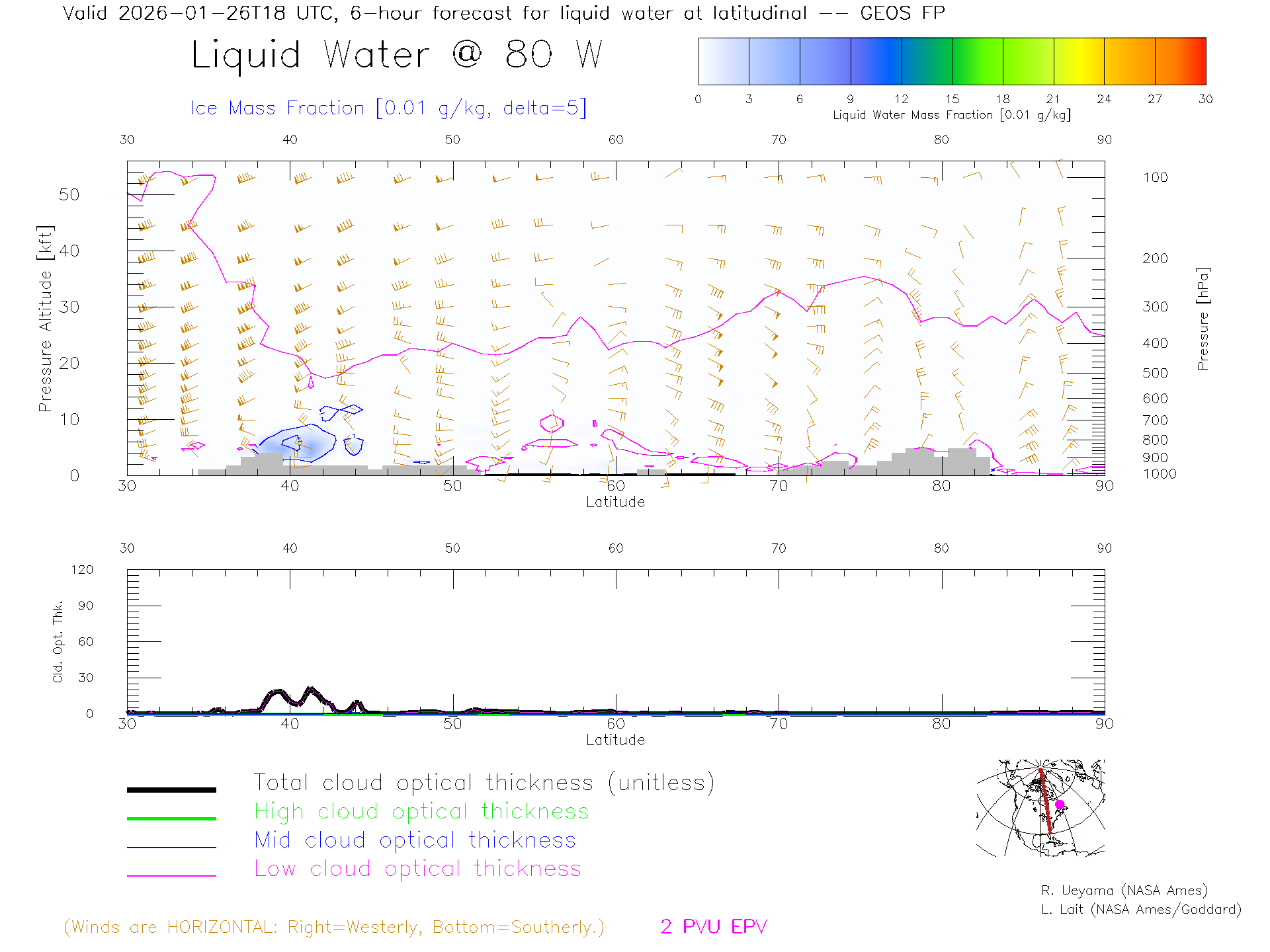 GEOS Forecast Cloud Water Content X-Section (80 W)