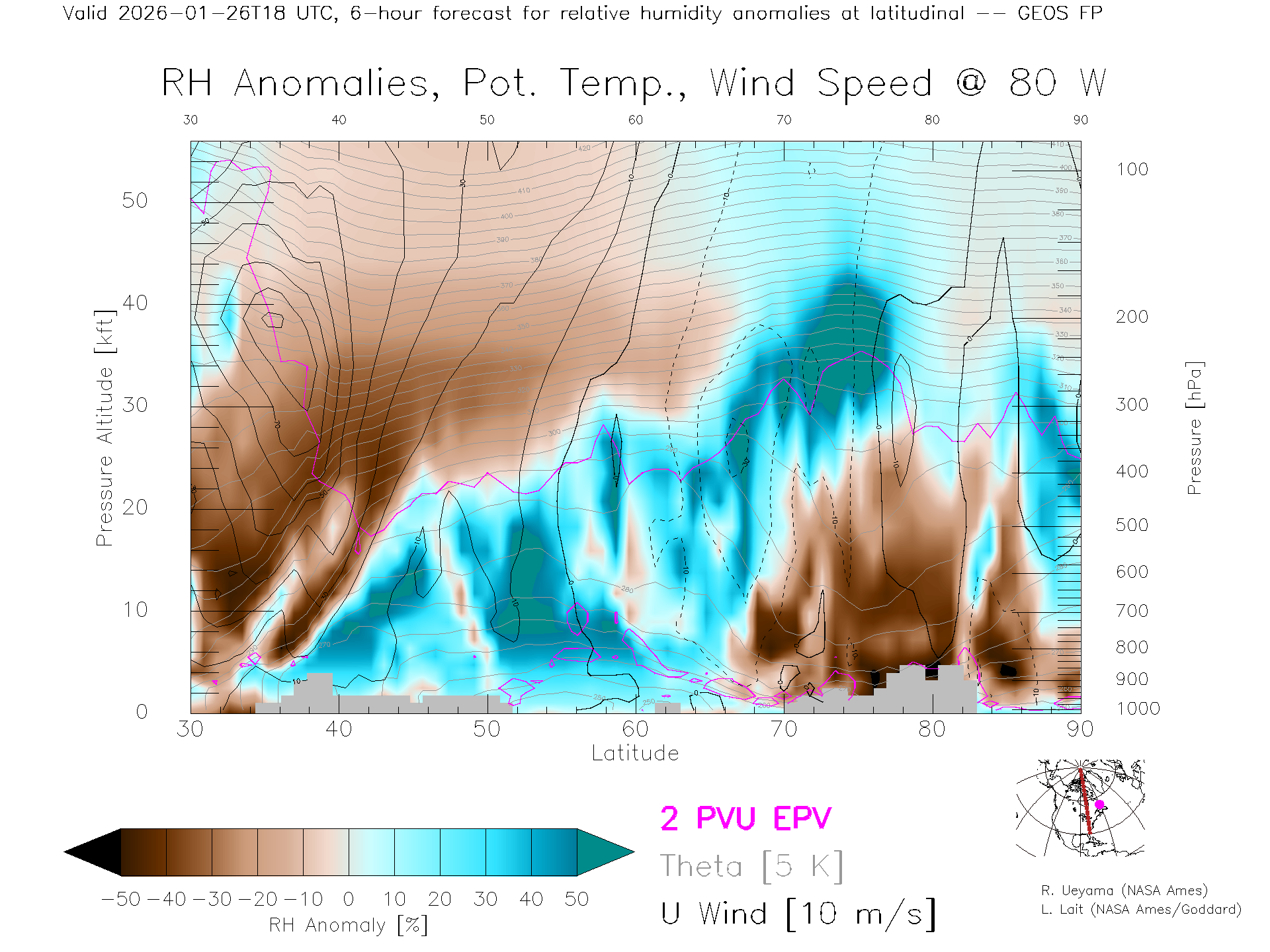 GEOS Forecast Rel. Hum. X-Section (80 W)