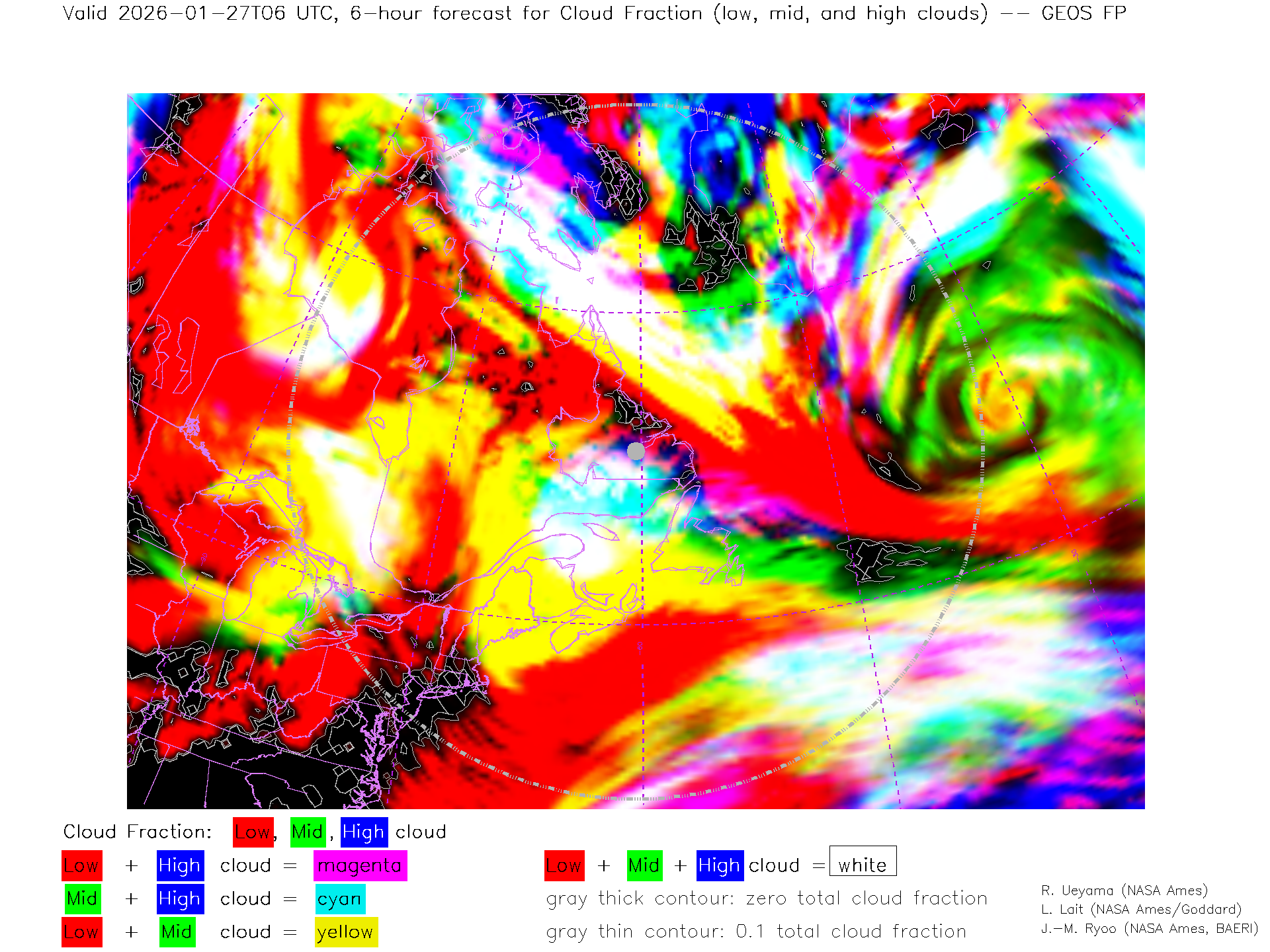 GEOS Forecast Low-, Mid- and High-level Cloud Fraction