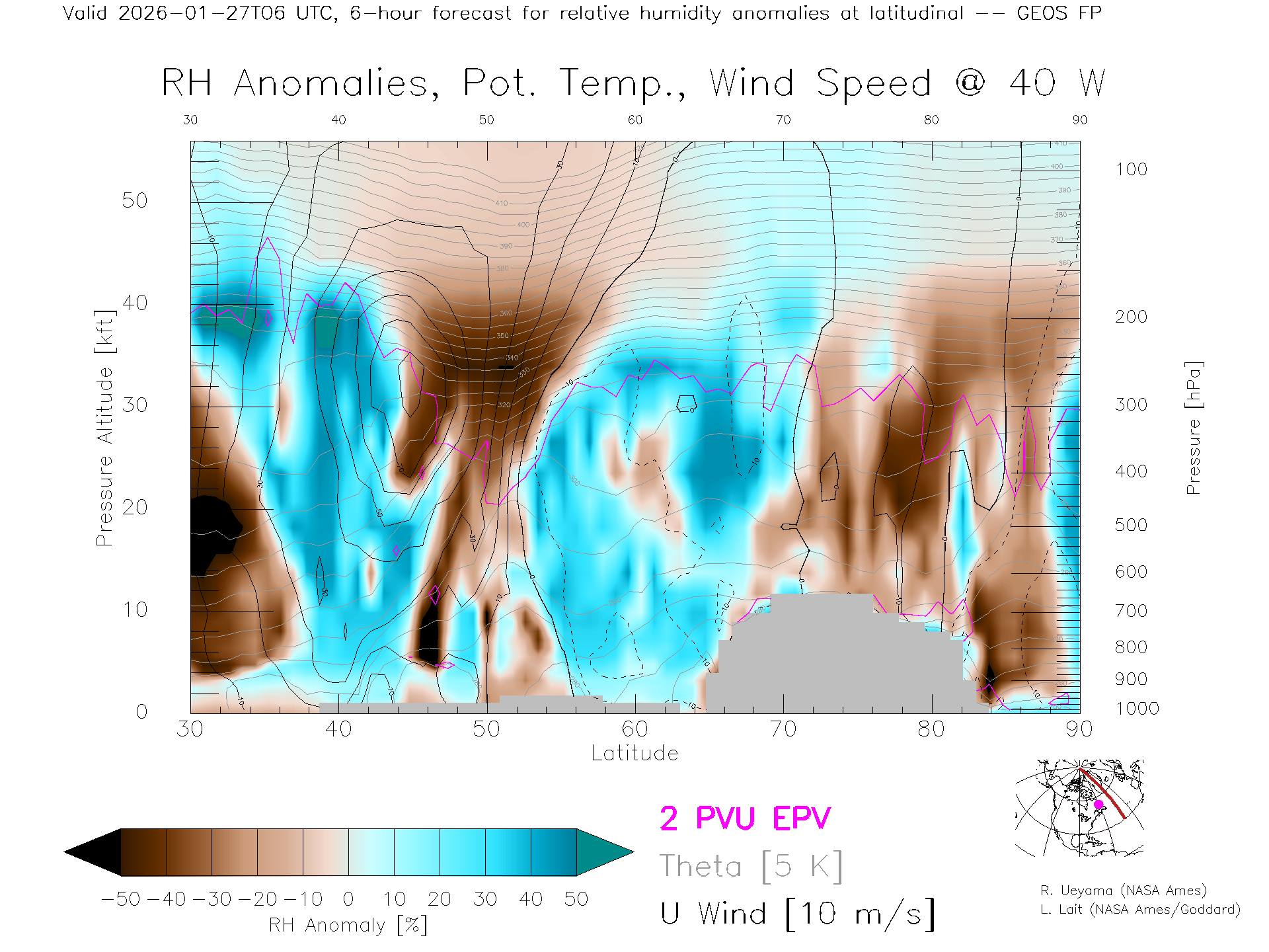 GEOS Forecast Rel. Hum. X-Section (40 W)