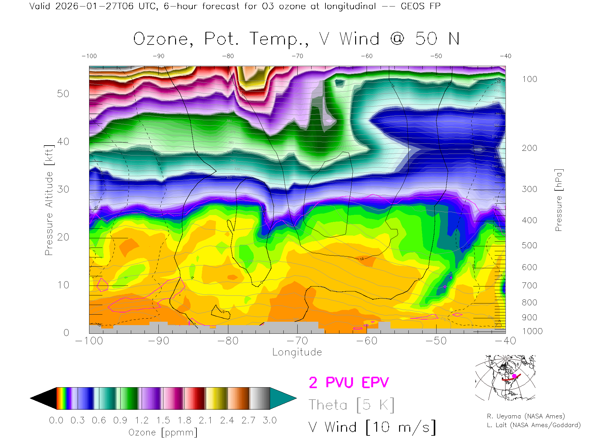 GEOS Forecast Ozone X-Section (50 N)