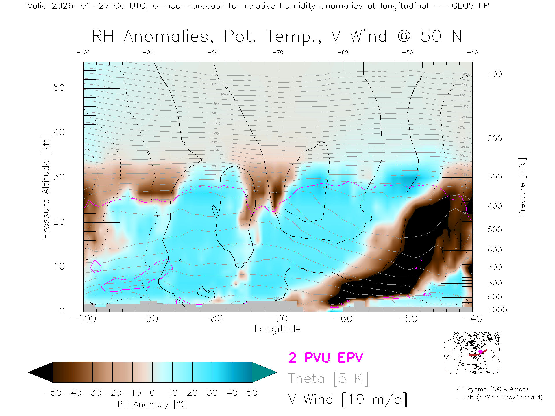 GEOS Forecast Rel. Hum. X-Section (50 N)